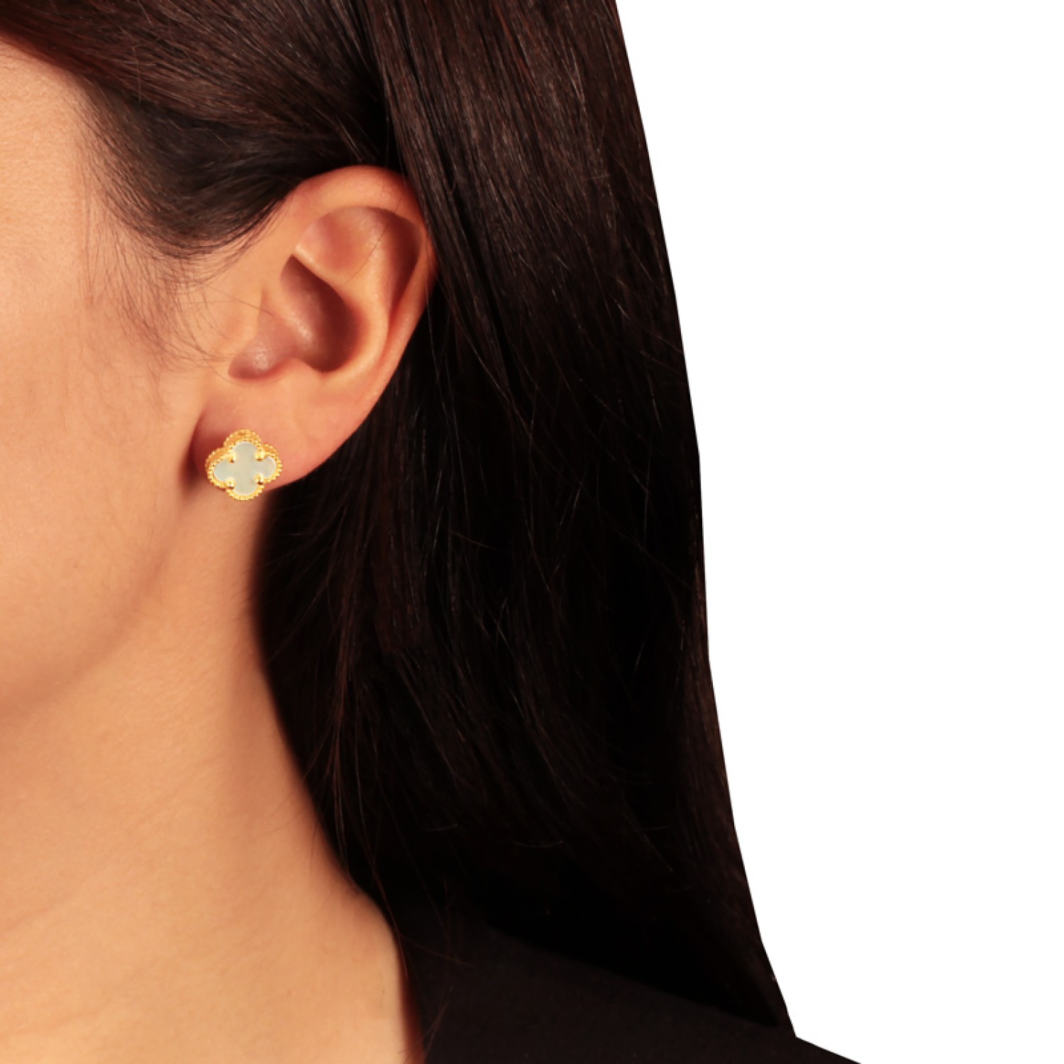 Ασημένια επίχρυσα σκουλαρίκια Τετράφυλλα Φίλντισι