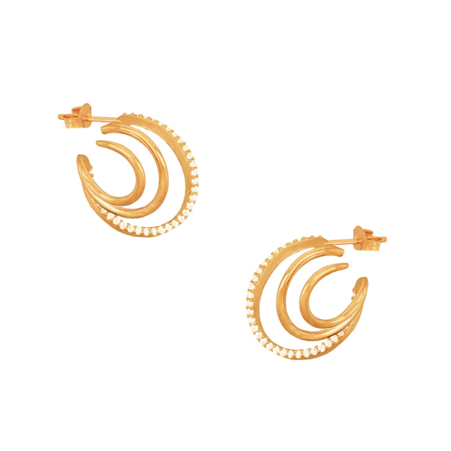 Ασημένια επίχρυσα σκουλαρίκια τριπλοί Κρίκοι 18.00mm