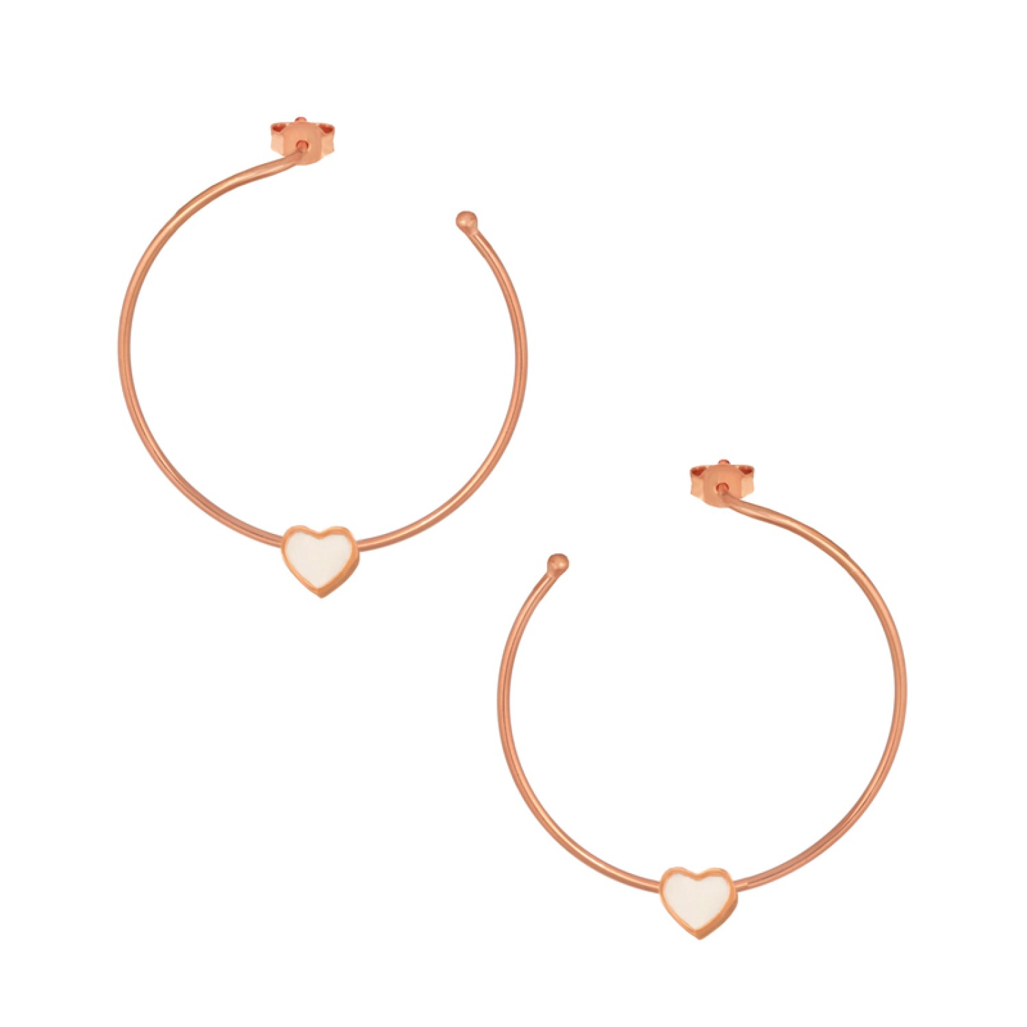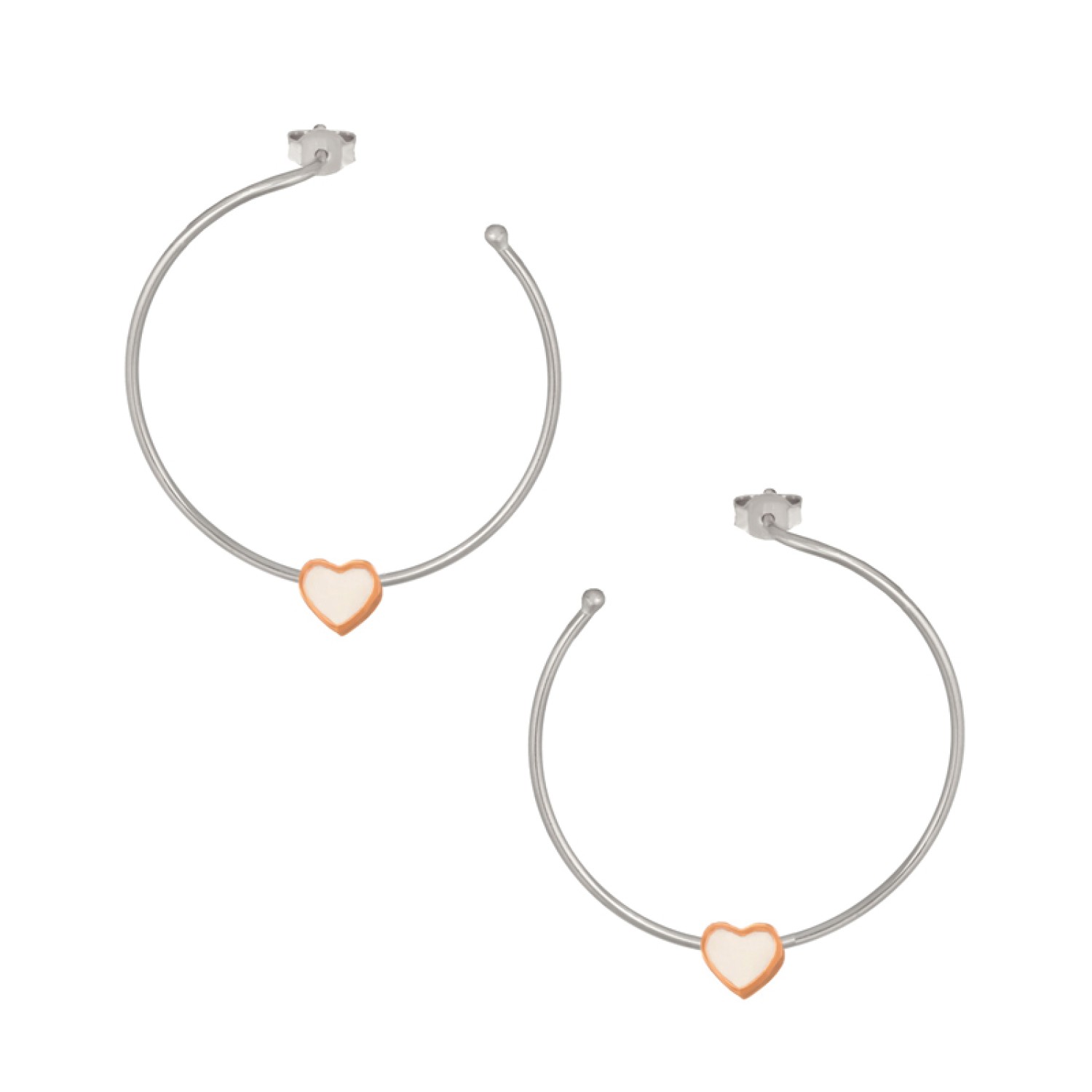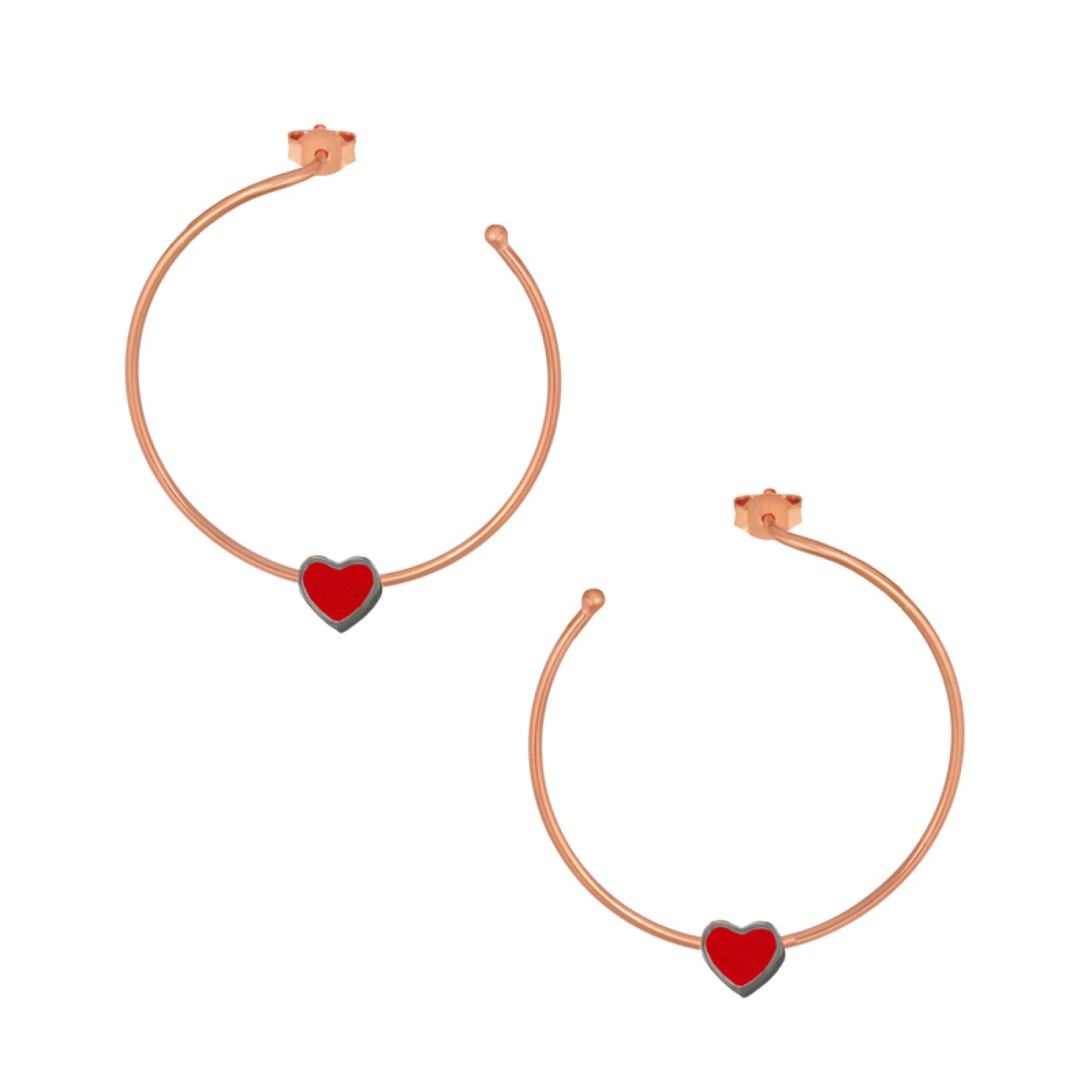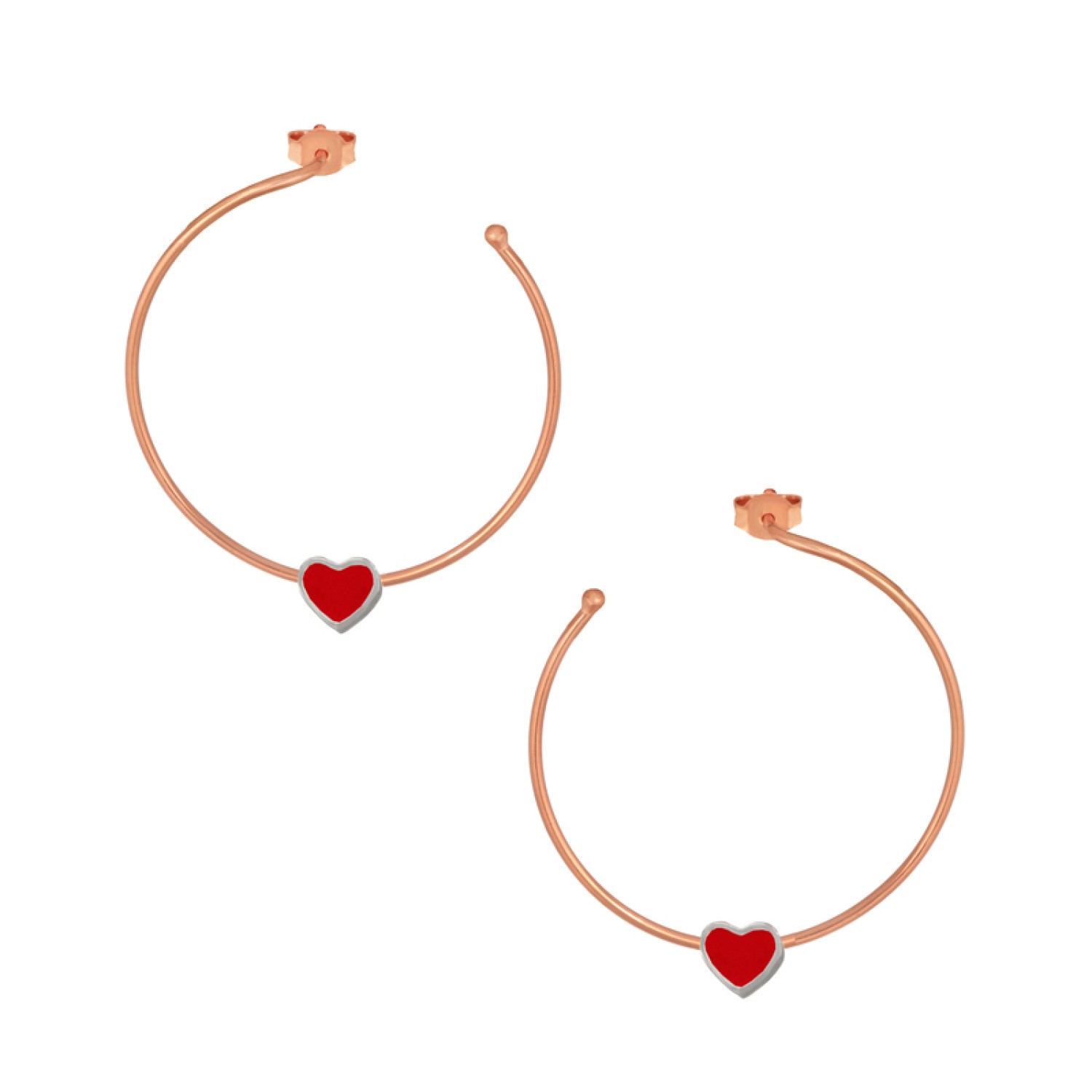 Ασημένια ρόζ επιχρυσωμένα σκουλαρίκια Κρίκοι Καρδιά Σμάλτο 35.00mm