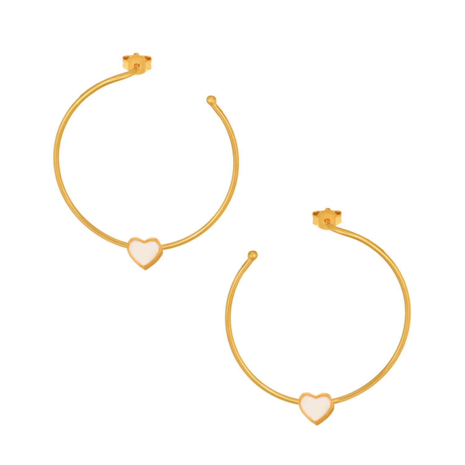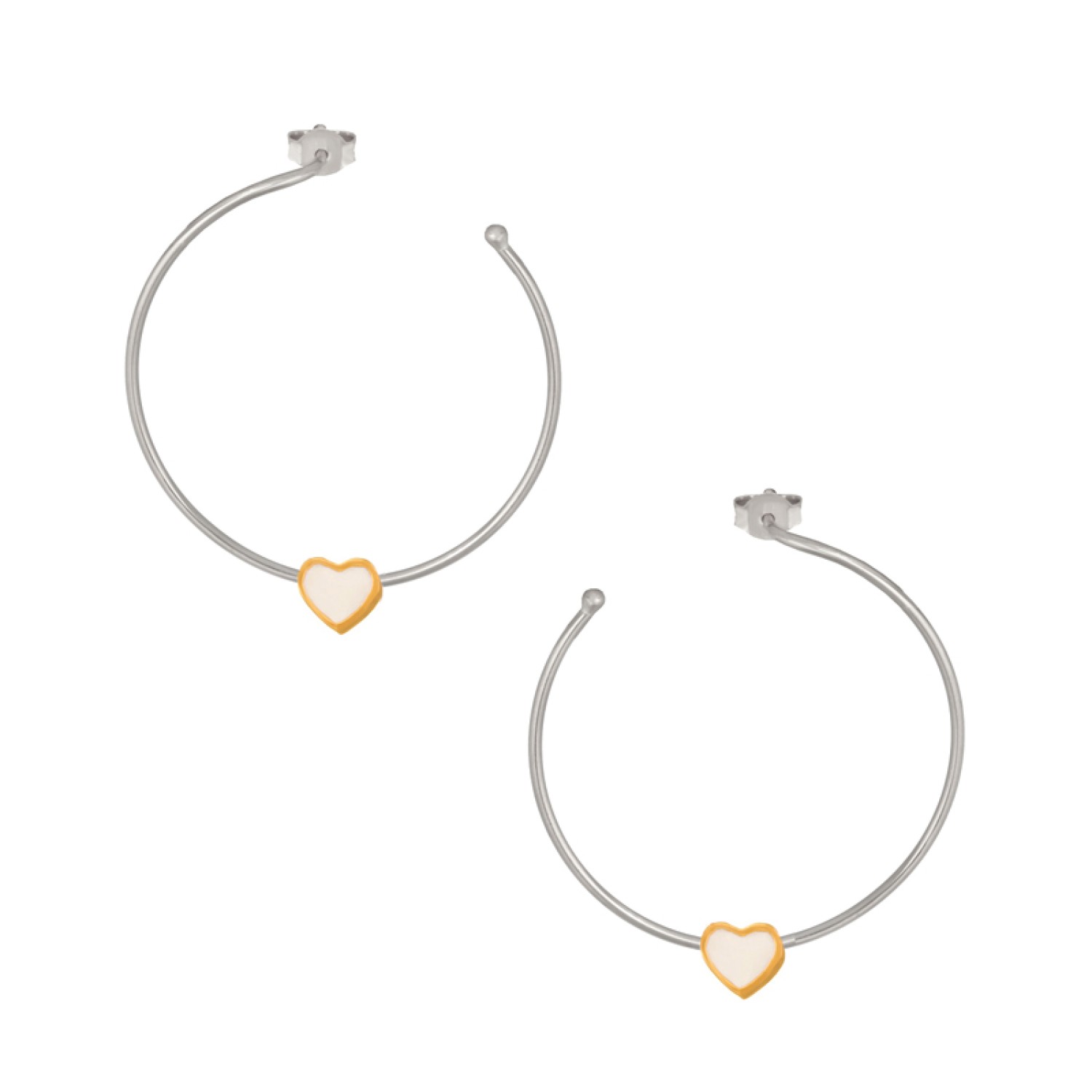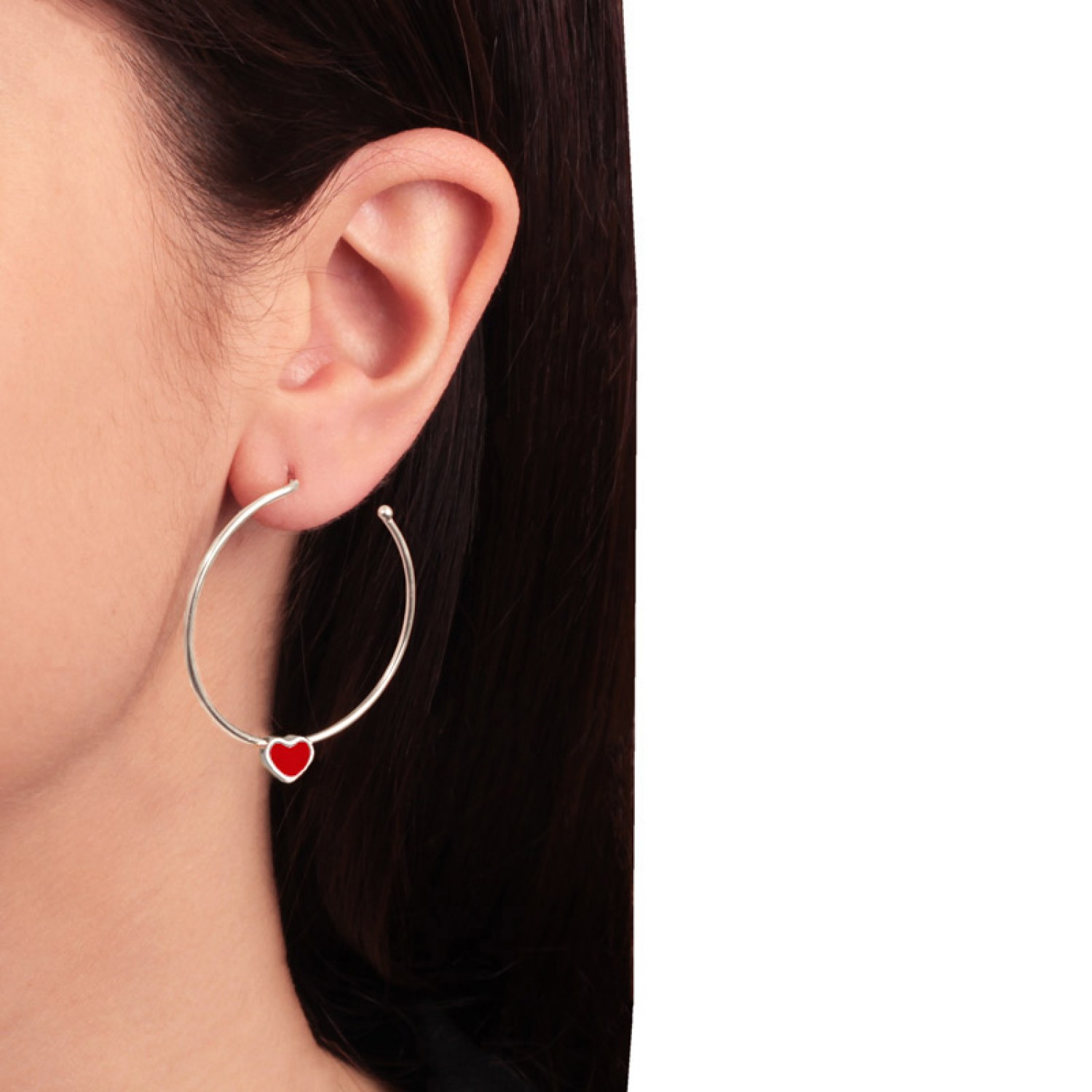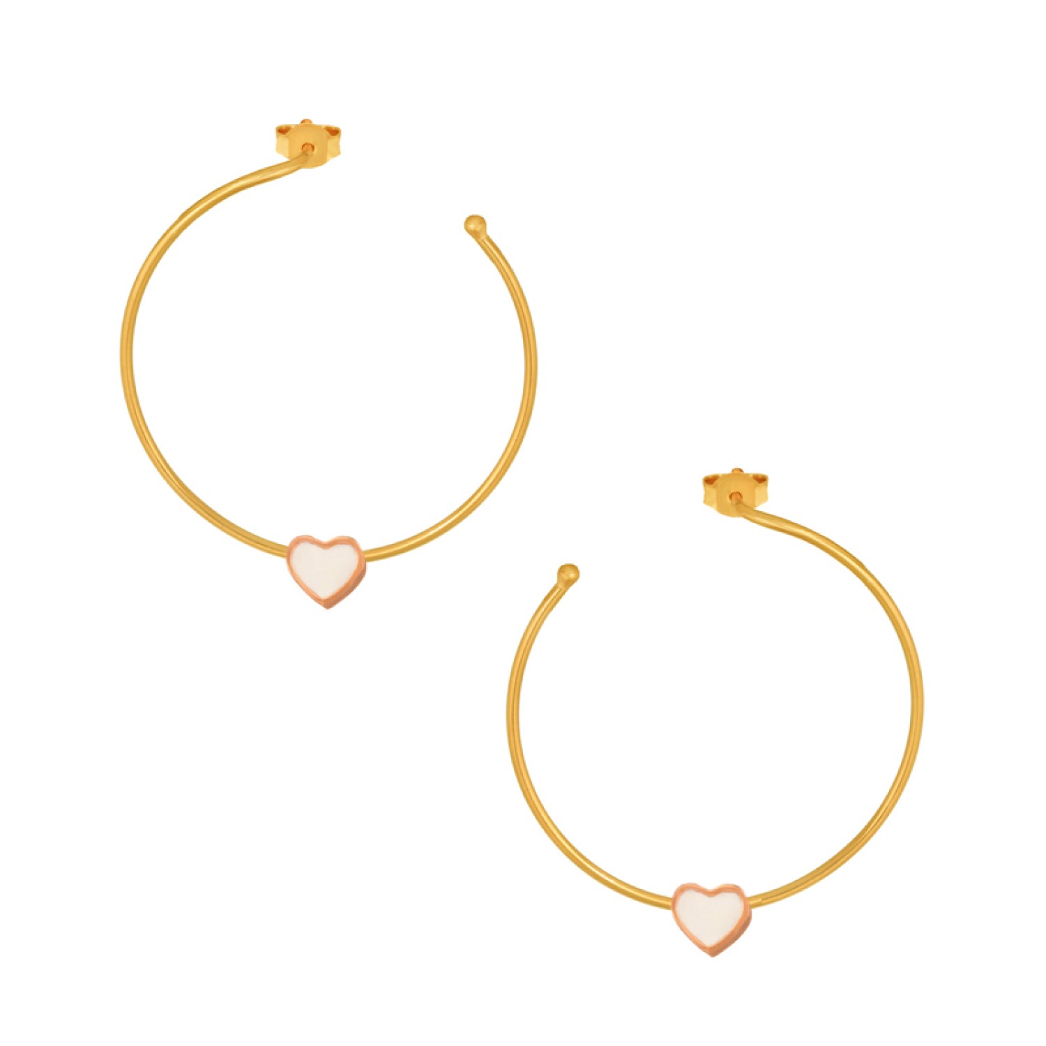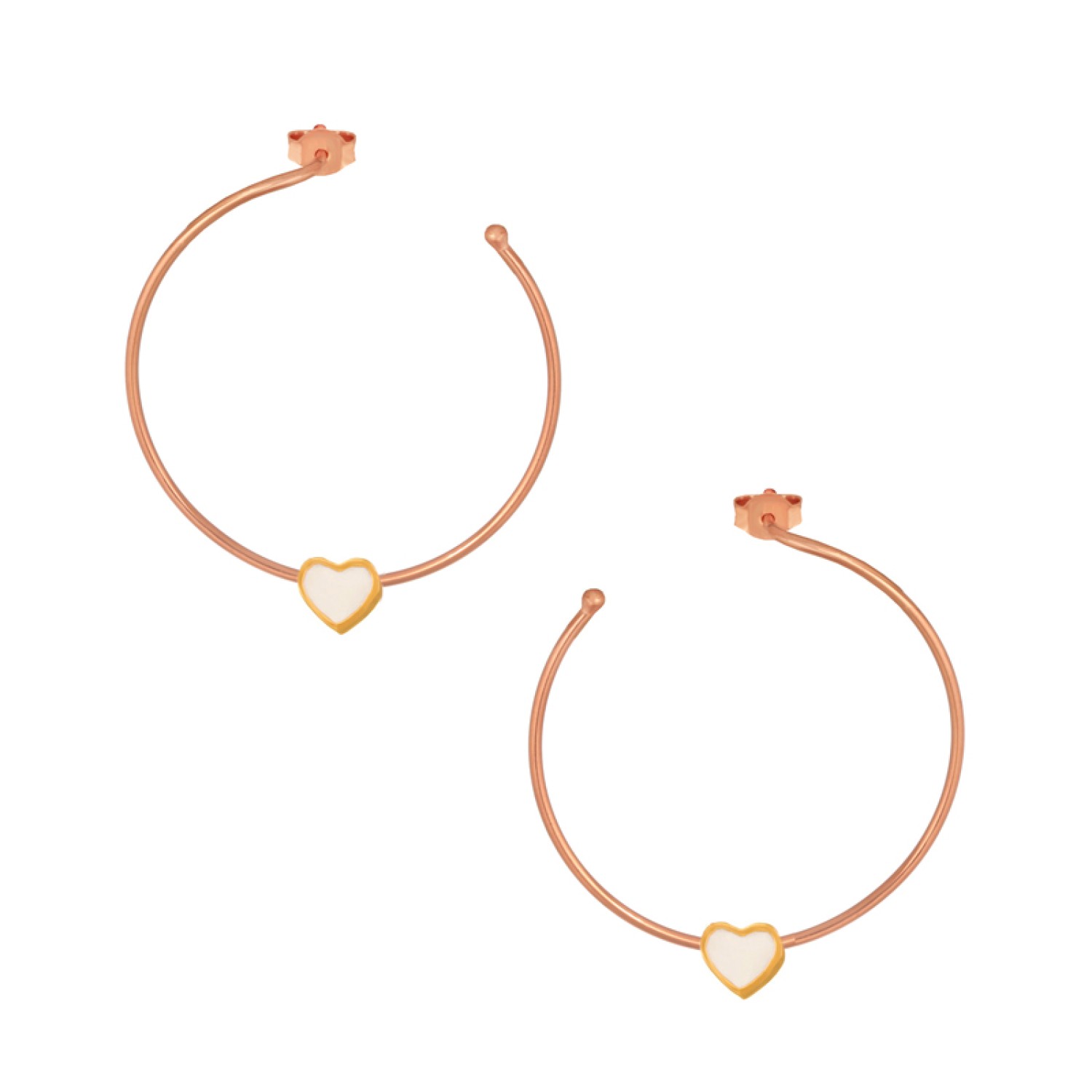 Ασημένια ρόζ επιχρυσωμένα σκουλαρίκια Κρίκοι Καρδιά Σμάλτο 35.00mm