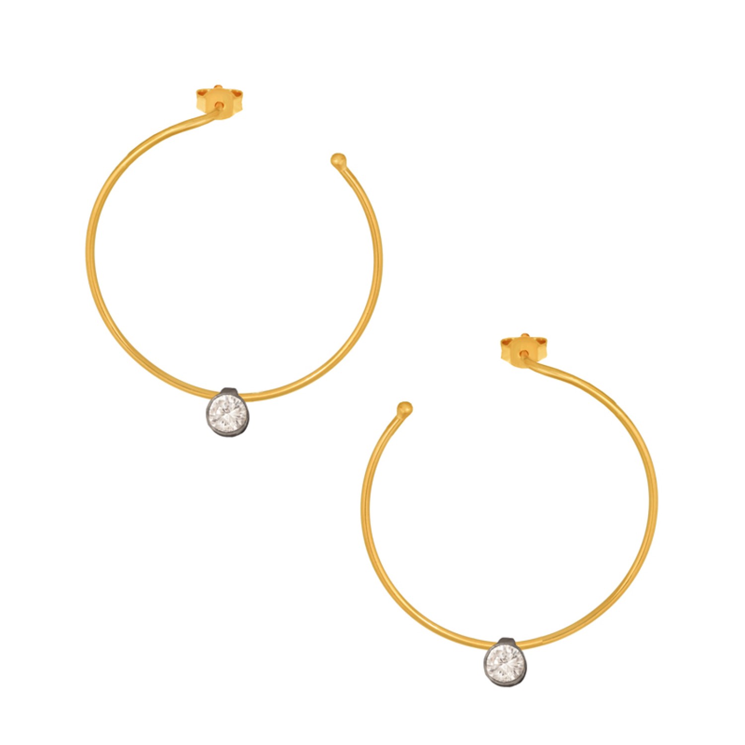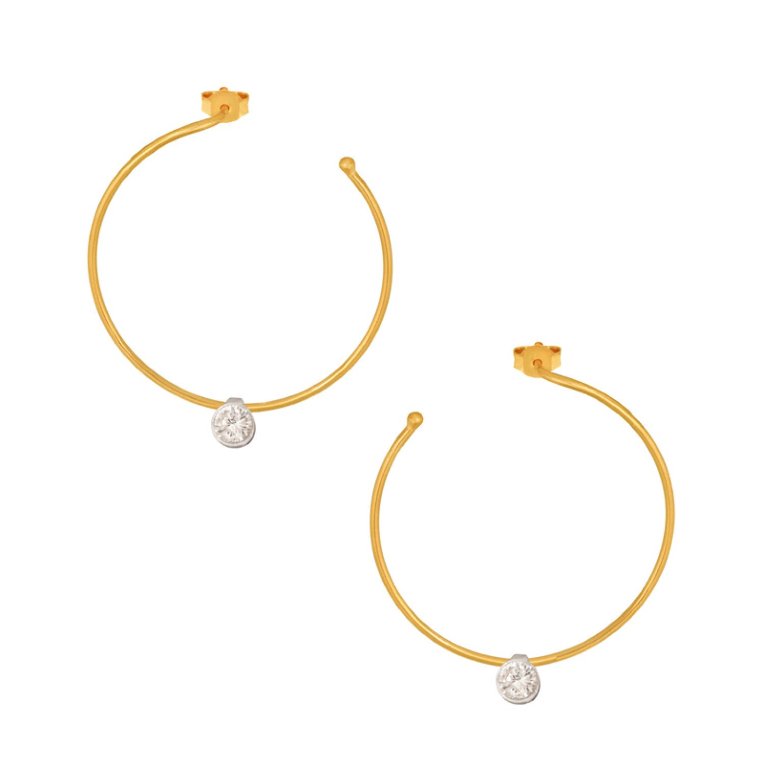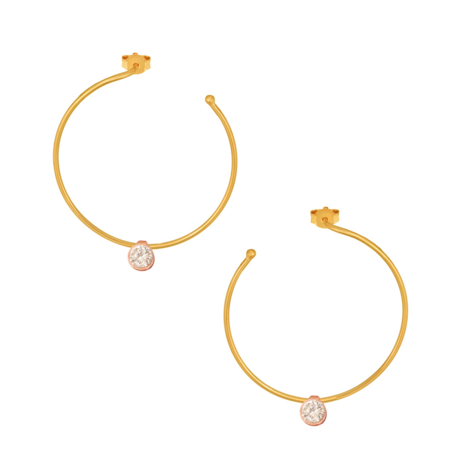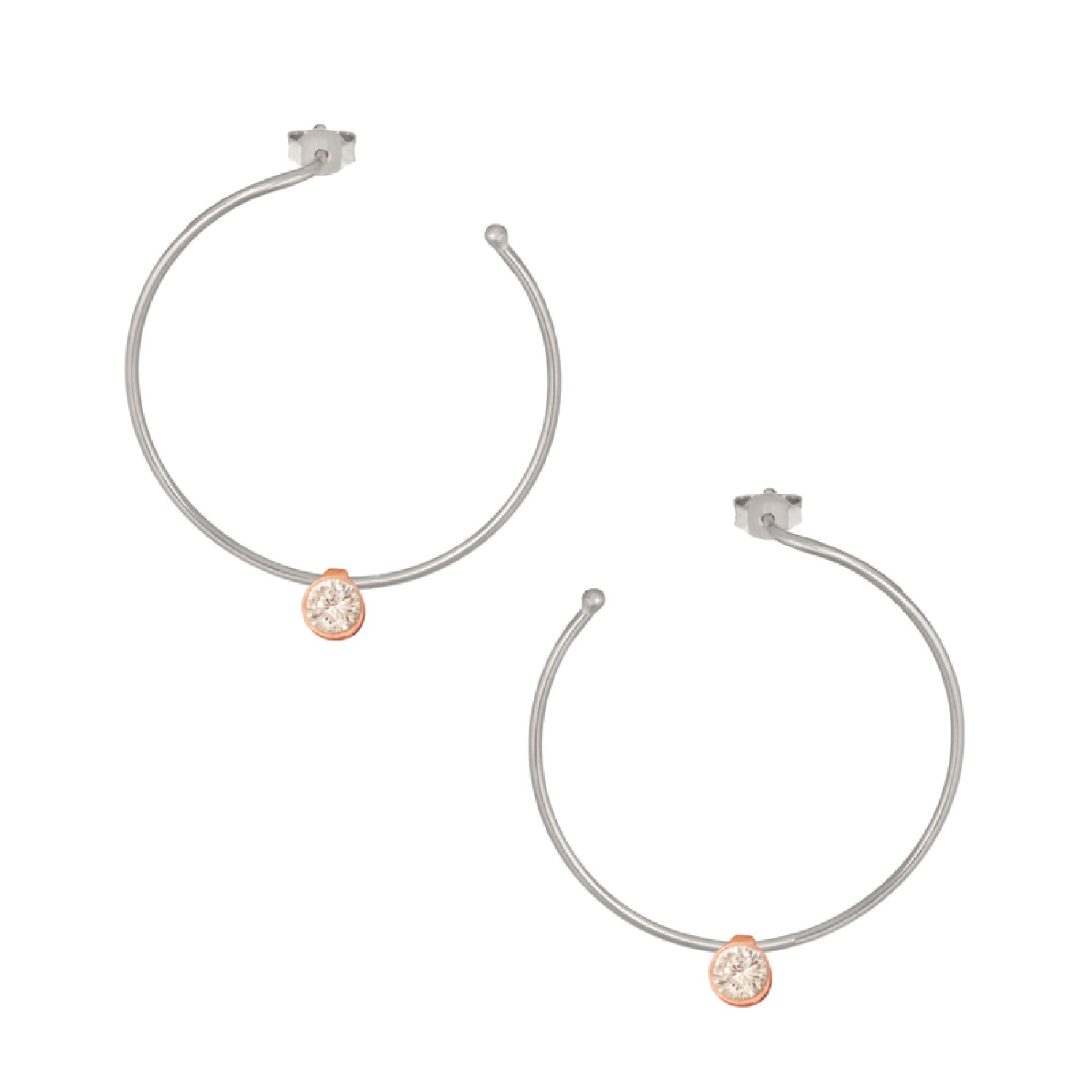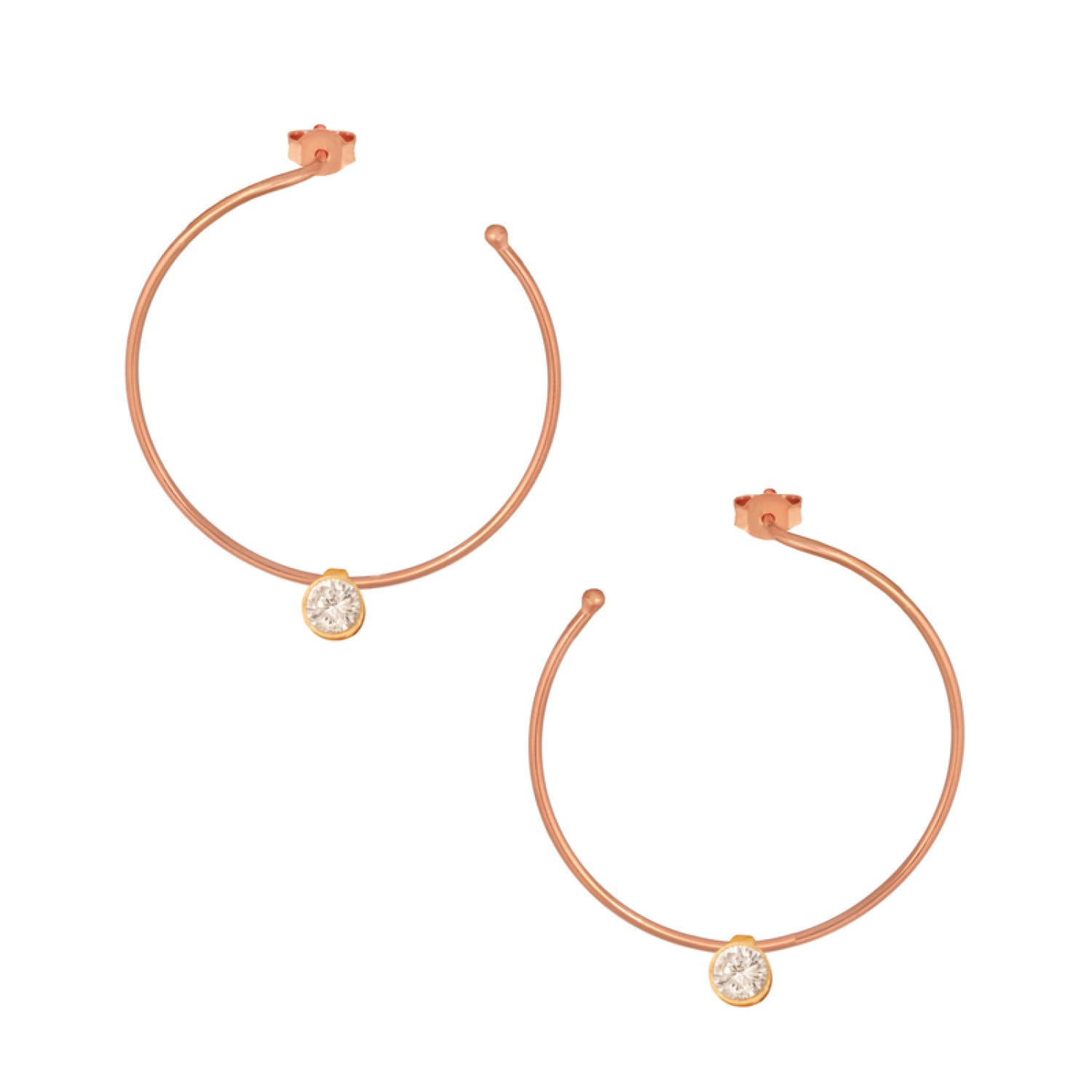 Ασημένια ρόζ επιχρυσωμένα σκουλαρίκια Κρίκοι Μονόπετρα 35.00mm