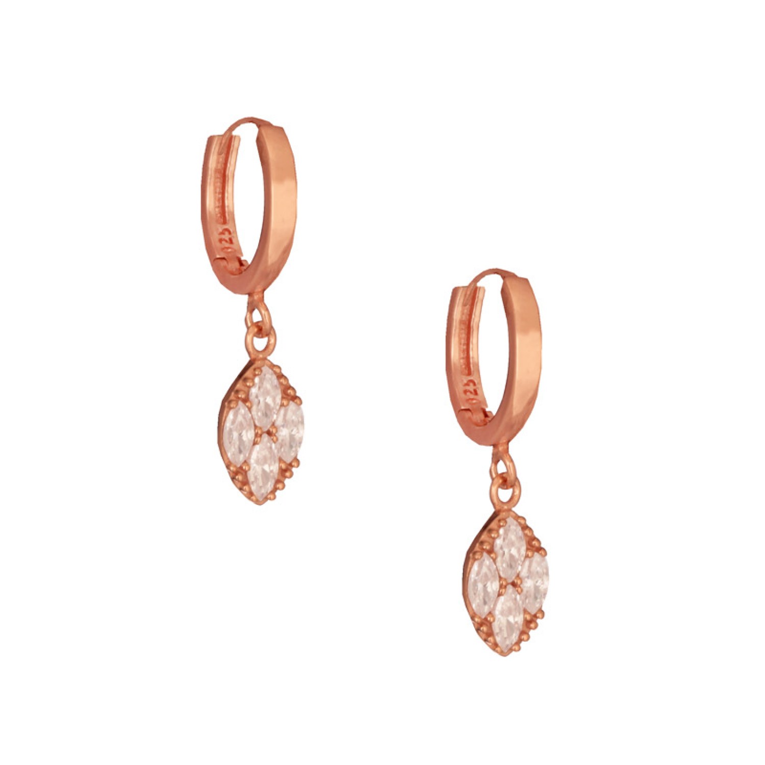 Ασημένια ρόζ σκουλαρίκια Κρίκοι Σταγόνες