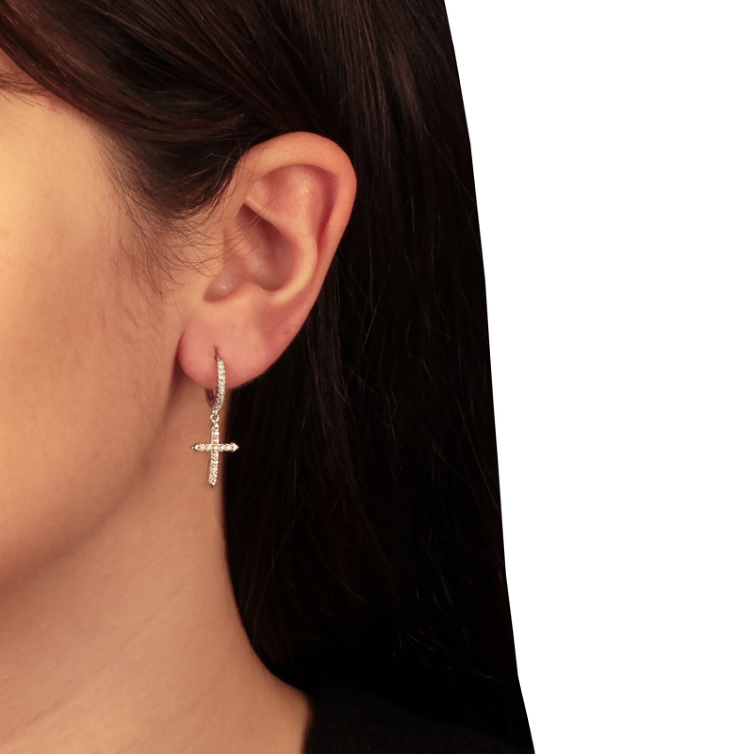 Ασημένια σκουλαρίκια huggies Κρίκοι Σταυροί 12.00mm
