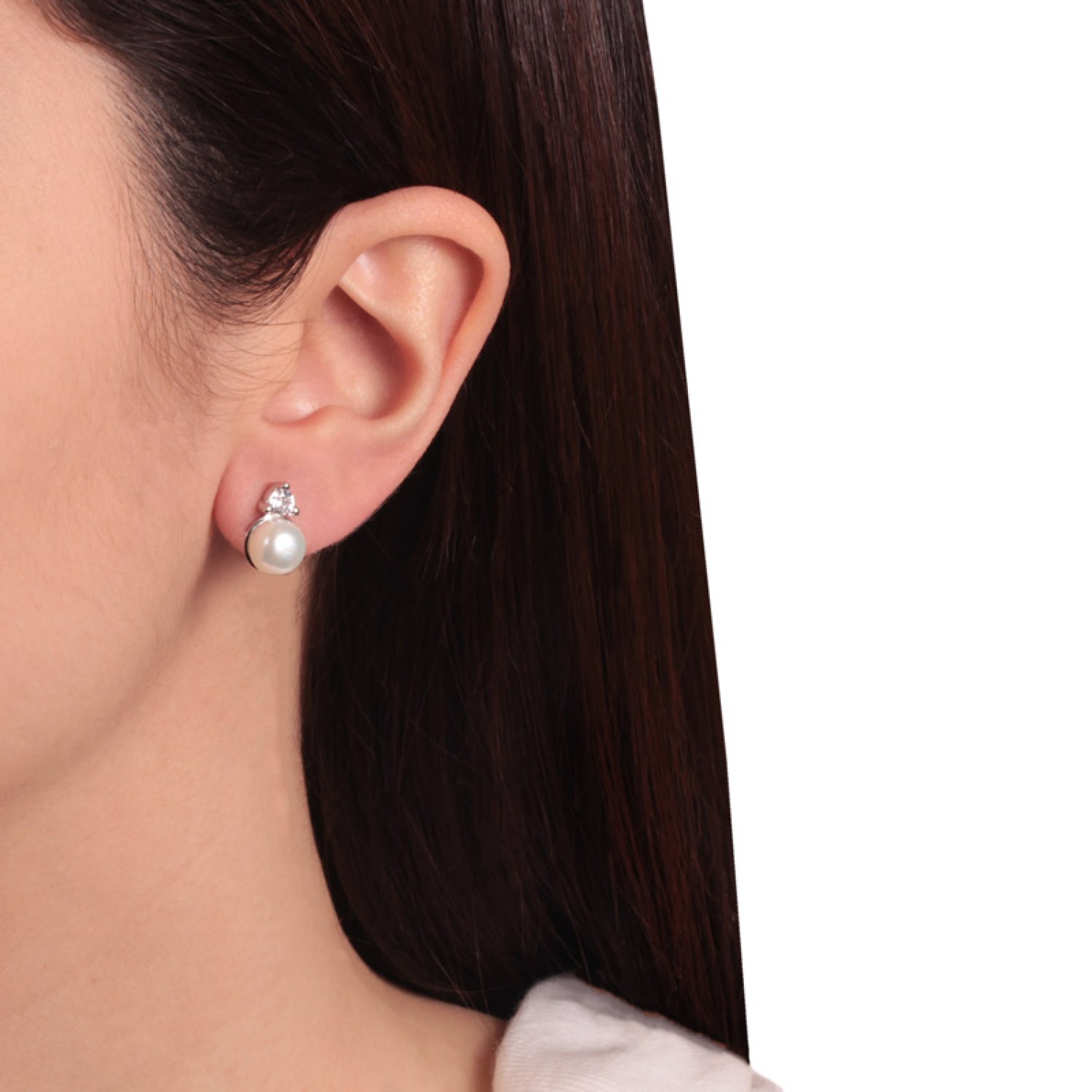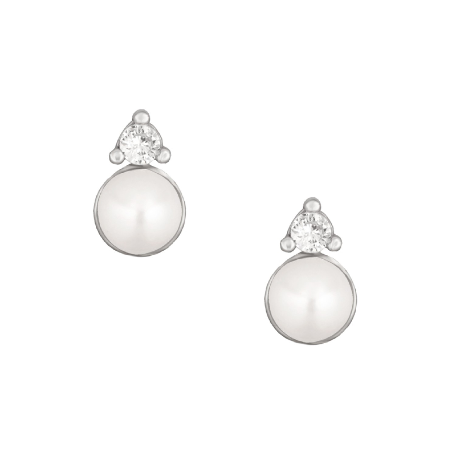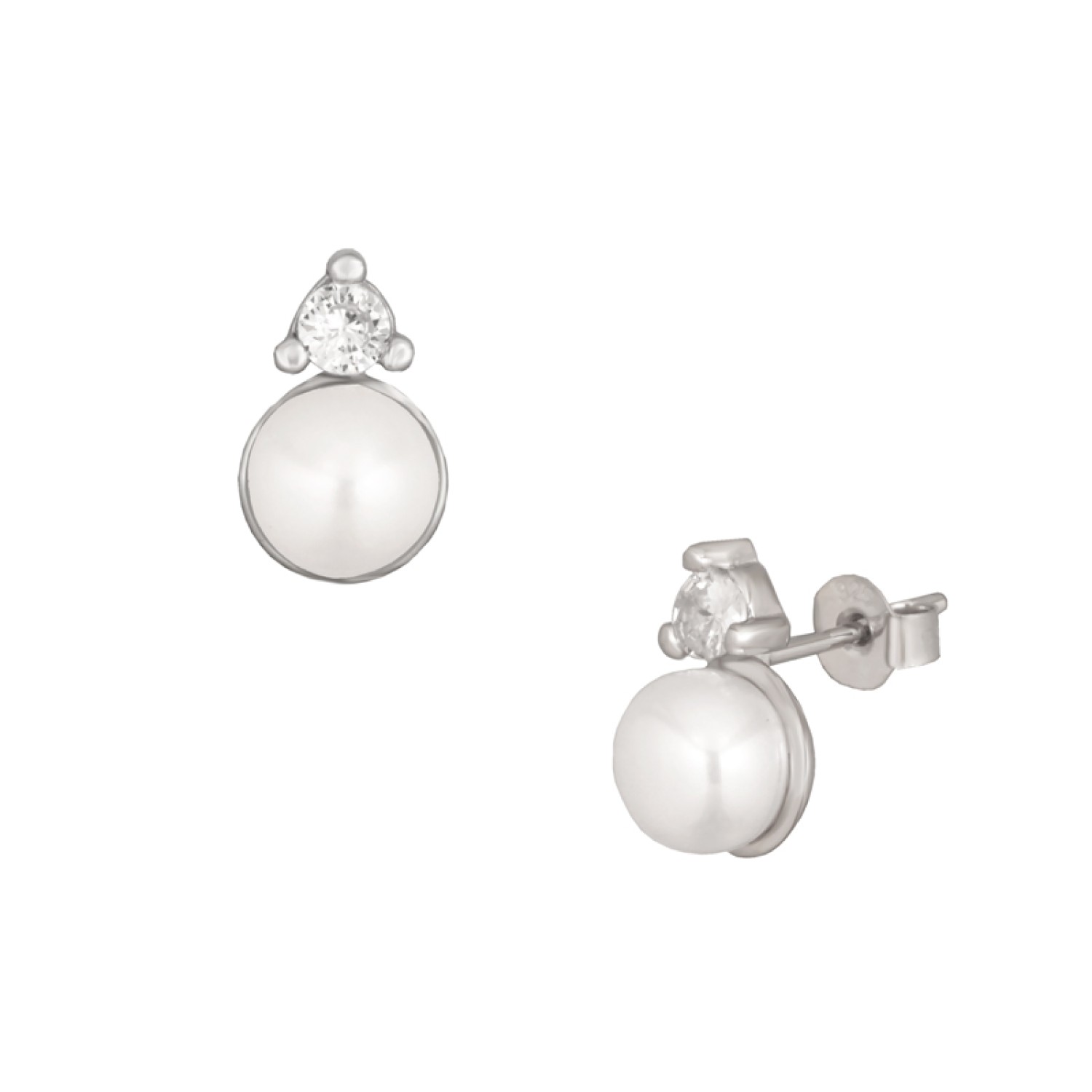 Ασημένια σκουλαρίκια Μονόπετρα Μαργαριτάρια