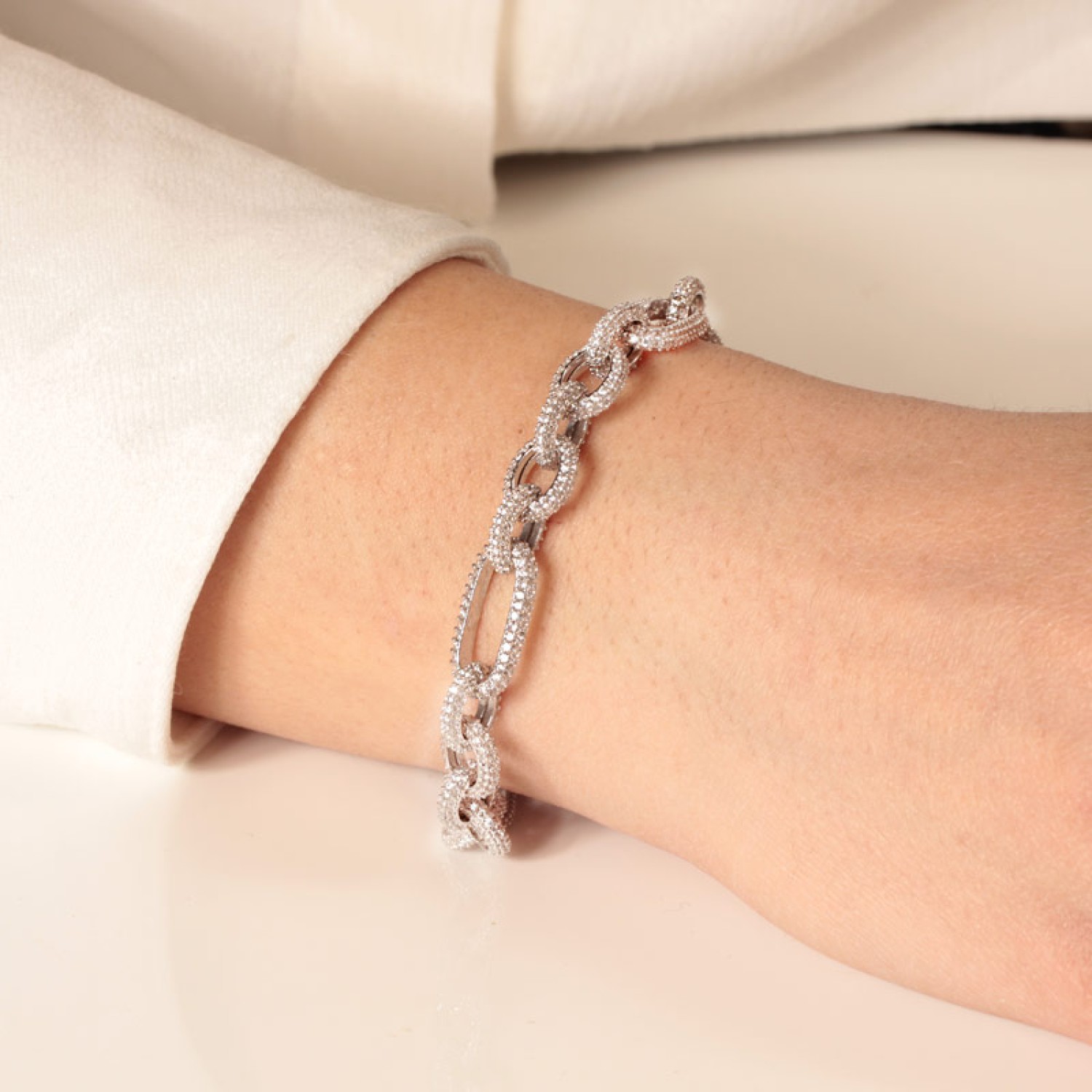 Ασημένιο επιπλατινωμένο βραχιόλι Αλυσίδα Κρίκοι