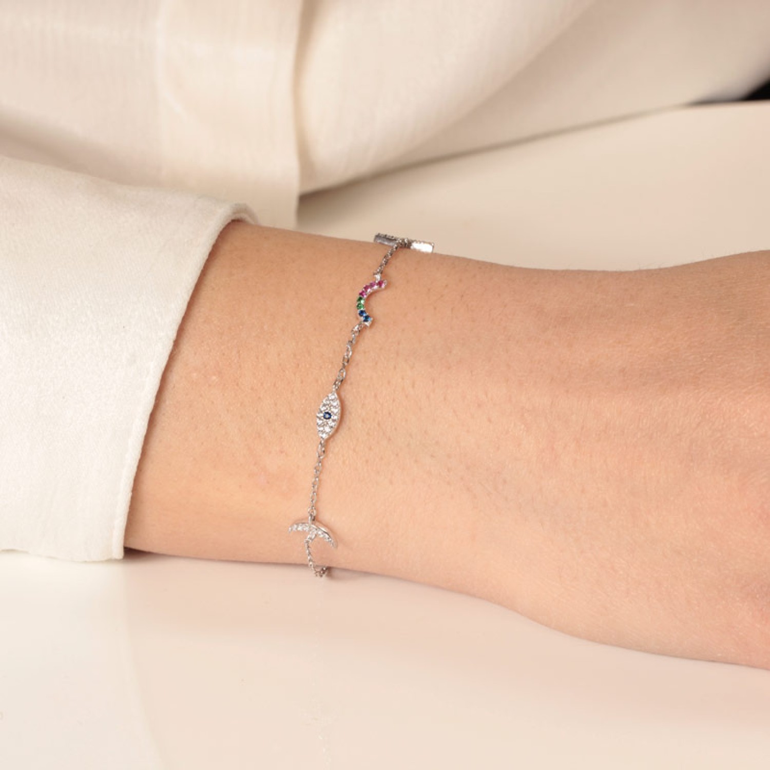 Ασημένιο επιπλατινωμένο βραχιόλι Γούρια Lucky 5