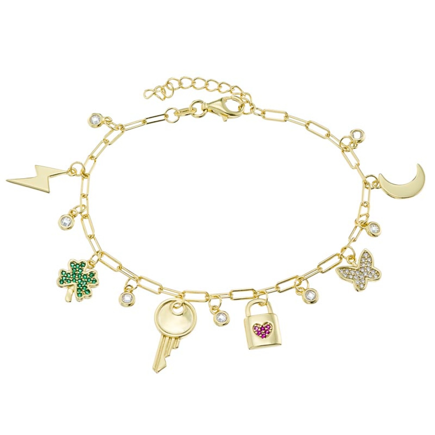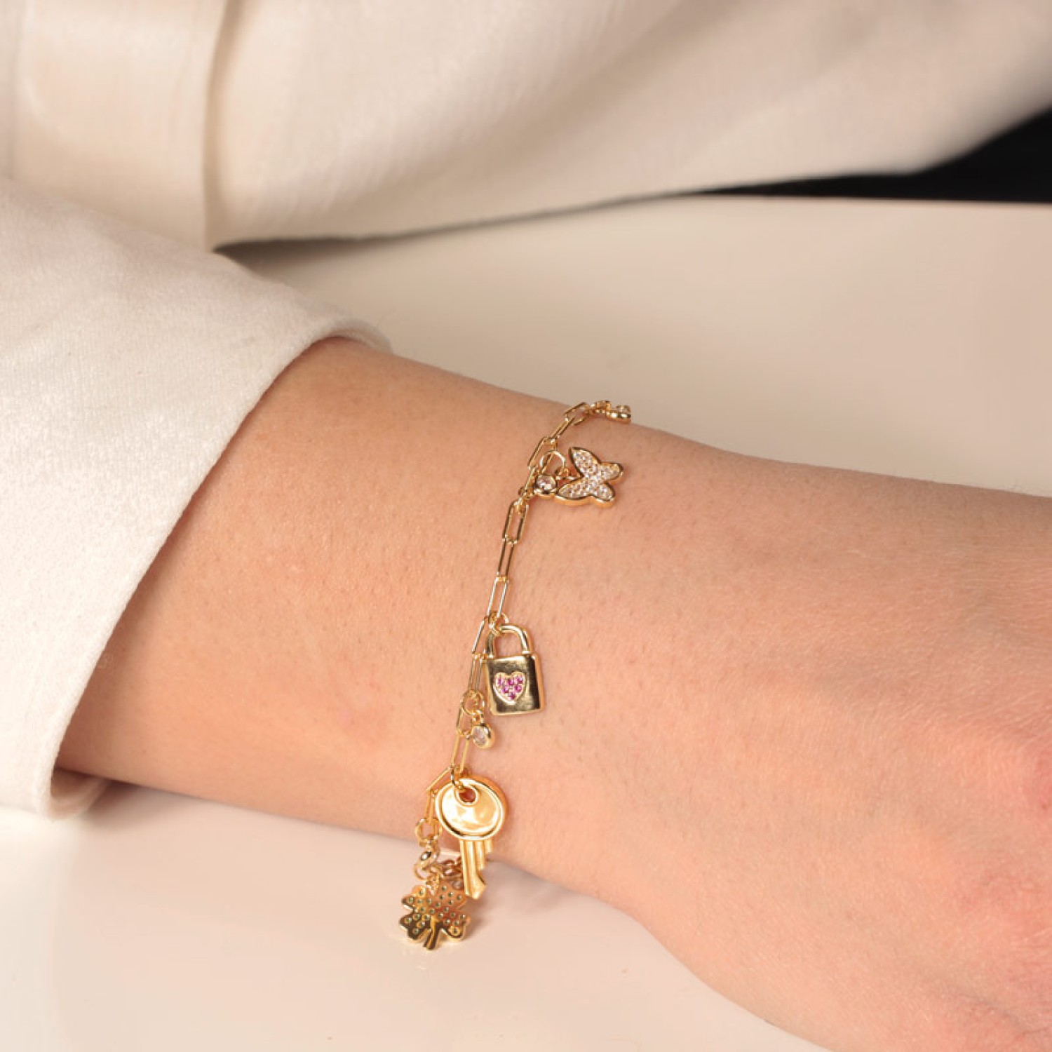 Ασημένιο επίχρυσο βραχιόλι Αλυσίδα Γούρια