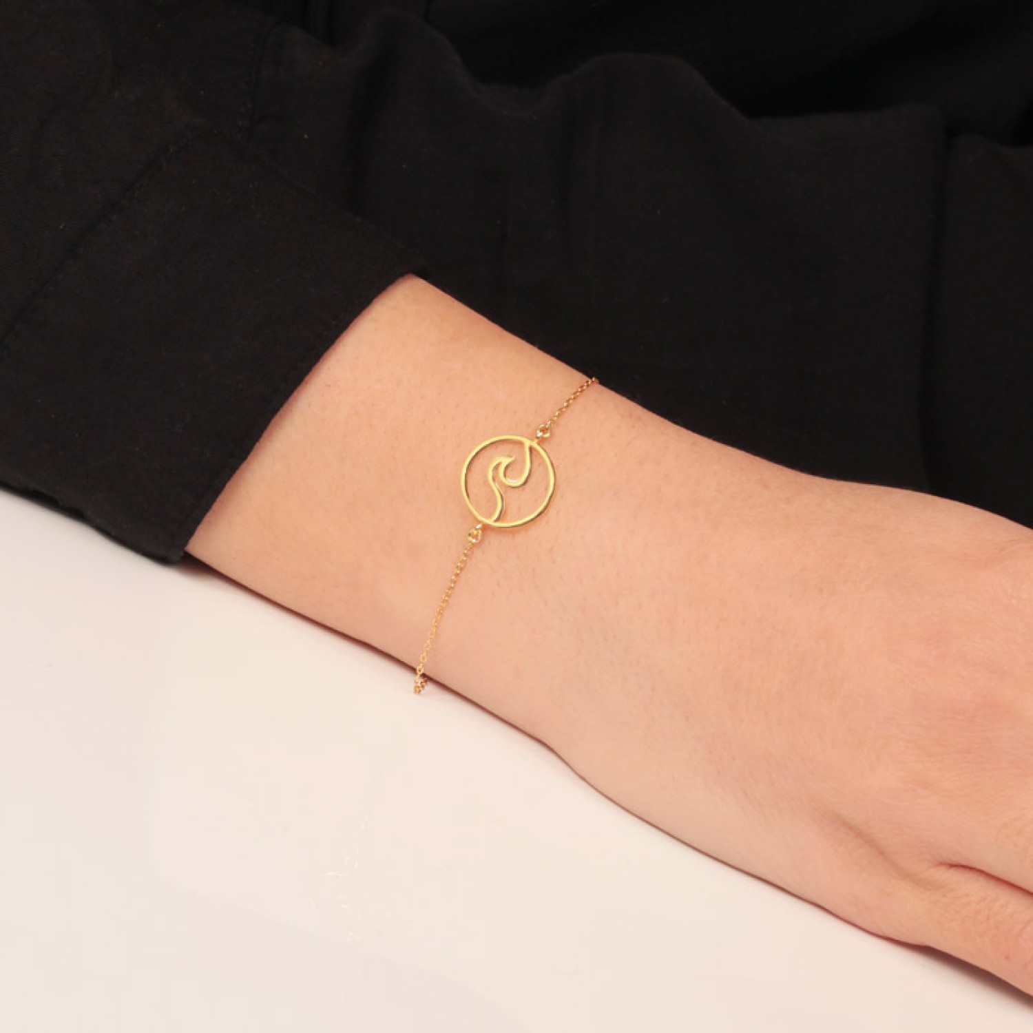 Ασημένιο επίχρυσο βραχιόλι Κύκλος Κύμα
