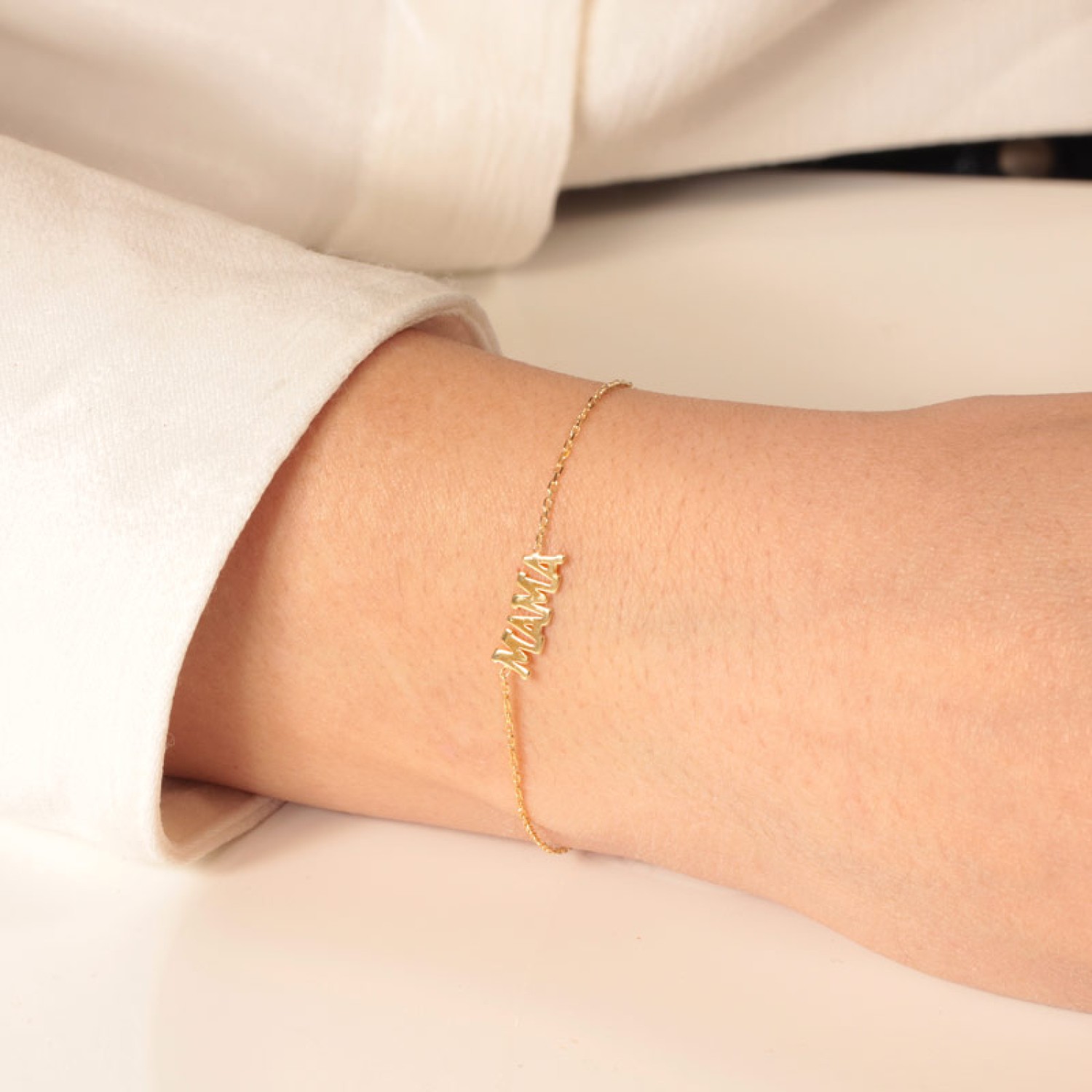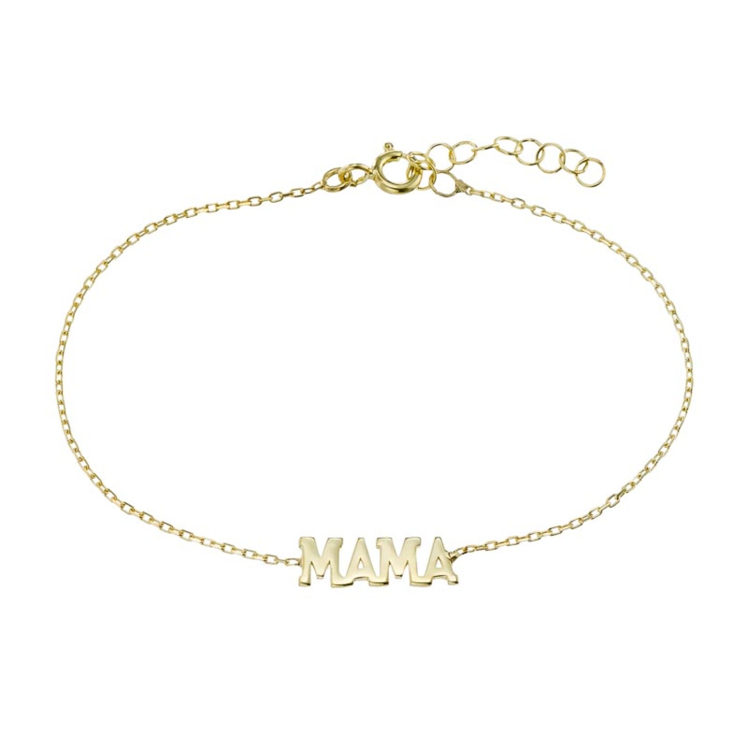 Γυναικείο ασημένιο 925 επίχρυσο σε 14 καράτια χρυσό βραχιόλι ΜΑΜΑ. Το συμβολικό κόσμημα που θα αγαπήσετε με την πρώτη ματιά. Κομψό και λαμπερό, δεν θα το αποχωριστείτε λεπτό. Μια εξαιρετική επιλογή και για δώρο σε μια νέα μανούλα. Η αλυσίδα χεριού διαθέτει προέκταση κρίκους για να την προσαρμόσετε στον καρπό σας.