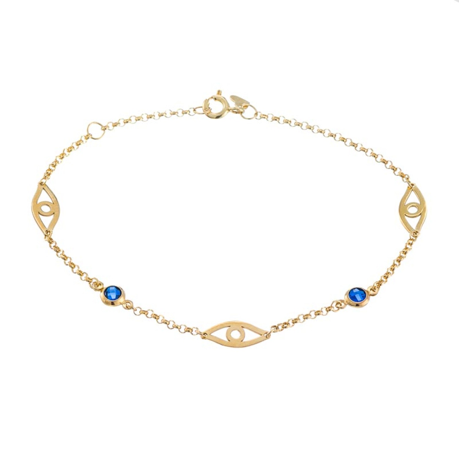 Ασημένιο επίχρυσο βραχιόλι Μάτια Μονόπετρα