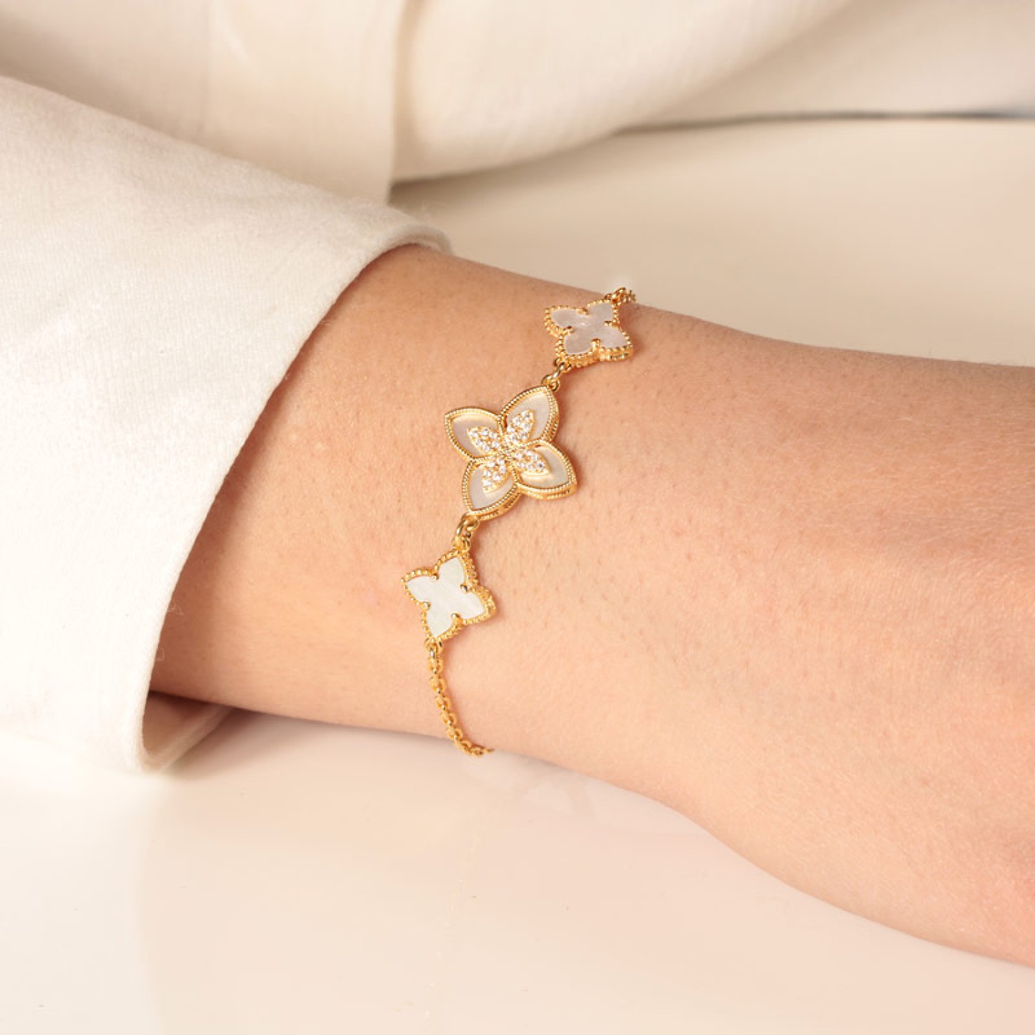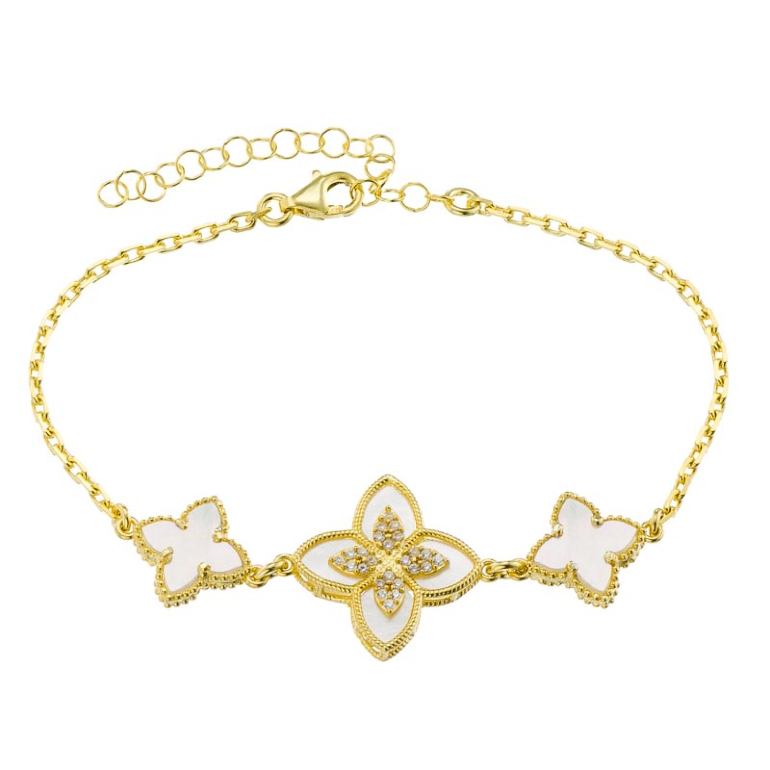 Ασημένιο επίχρυσο βραχιόλι Τετράφυλλα Σταυρός