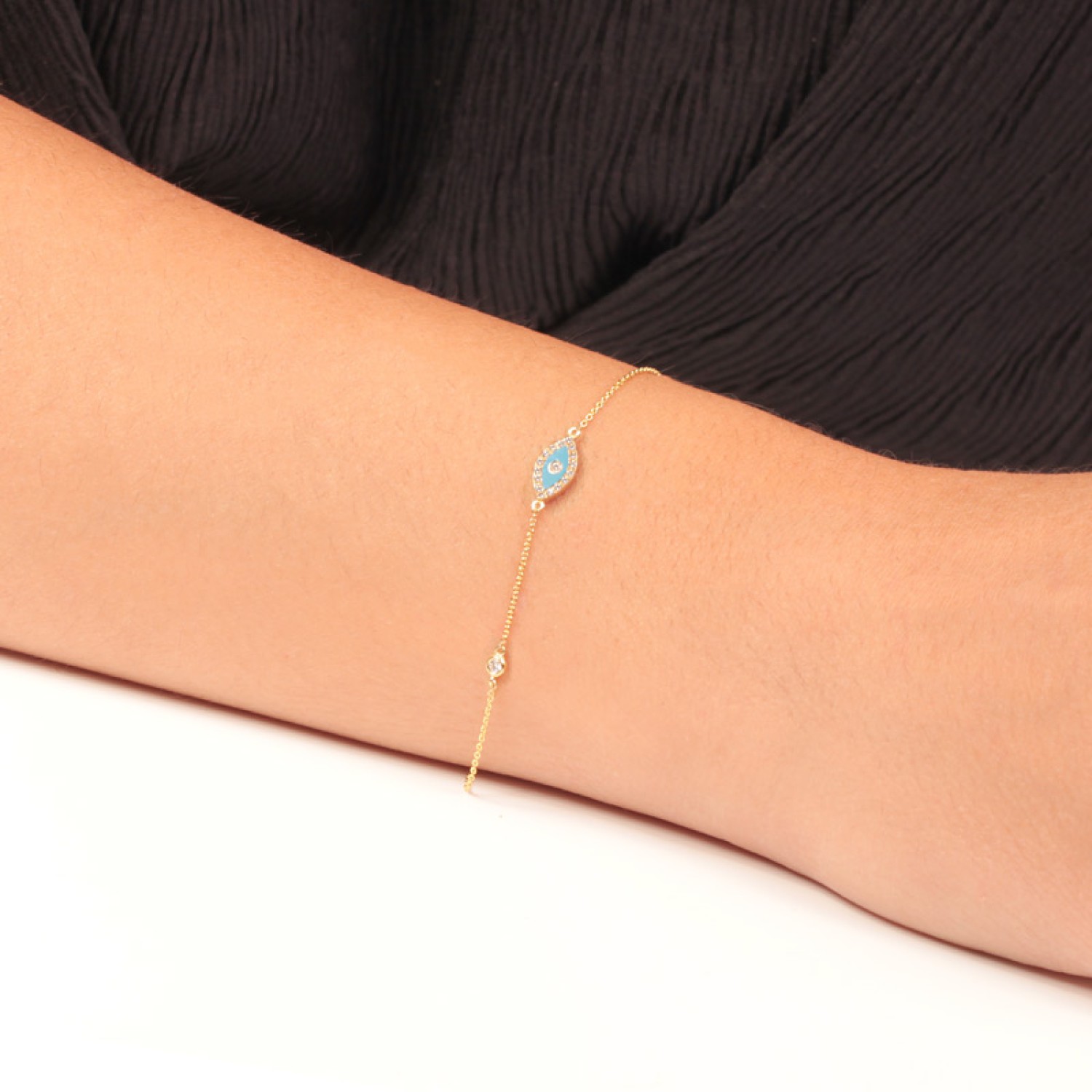 Γυναικείο χρυσό 18k βραχιόλι Μάτι Διαμάντια