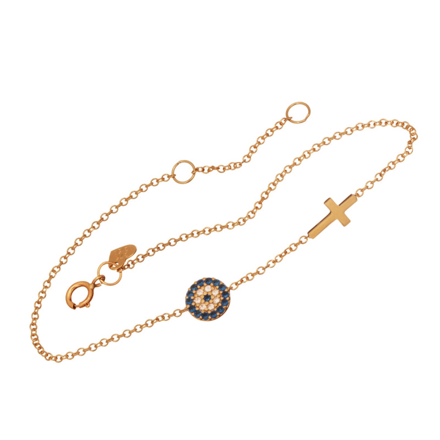 Γυναικείο χρυσό 9k βραχιόλι Μάτι Σταυρός
