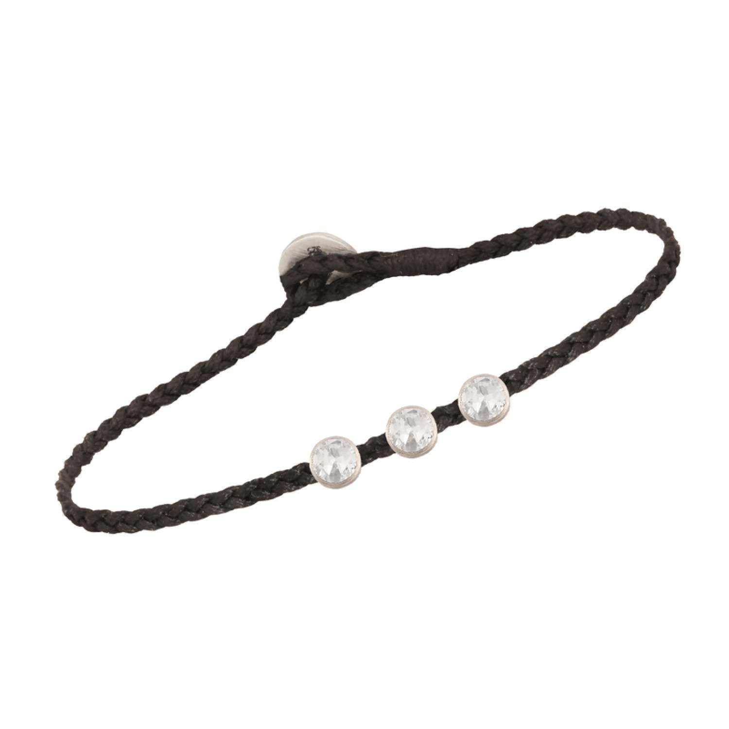 Βραχιόλι κορδόνι ασημένιο Τριπλό Μονόπετρο