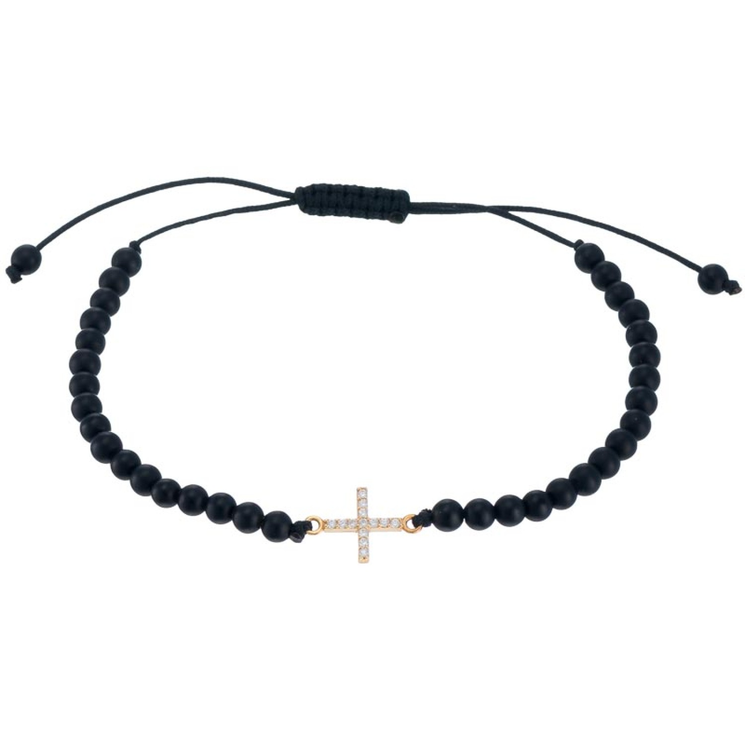 Γυναικείο βραχιόλι πέτρες μαύρο Όνυχα με ασημένιο 18k επίχρυσο Σταυρό στολισμένο με pave καρφωμένα λευκά ζιργκόν. Ενα κλασσικό σύμβολο Πίστης σε κομψή έκδοση που θα αγαπήσετε με την πρώτη ματιά σαν πολύτιμο φυλαχτό. Αν και ντελικάτο θα χαρίσει λάμψη σε κάθε εμφάνιση μαγνητίζοντας όλα τα βλέμματα θαυμασμού. Ιδανικό για να το φορέσετε μαζί με άλλα για mix match συνδυασμούς και να μην το αποχωρειστείτε λεπτό. Ιδανική επιλογή για εσάς ή για ενα προσωπικό δώρο με πολυτέλεια.