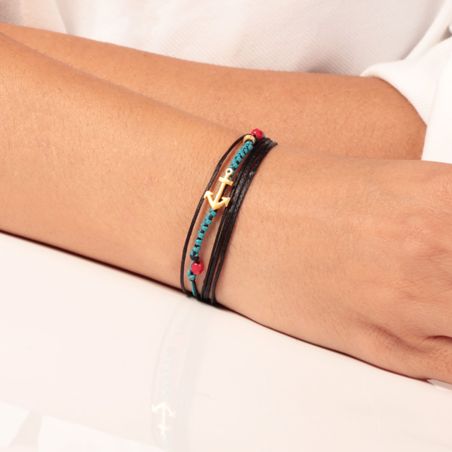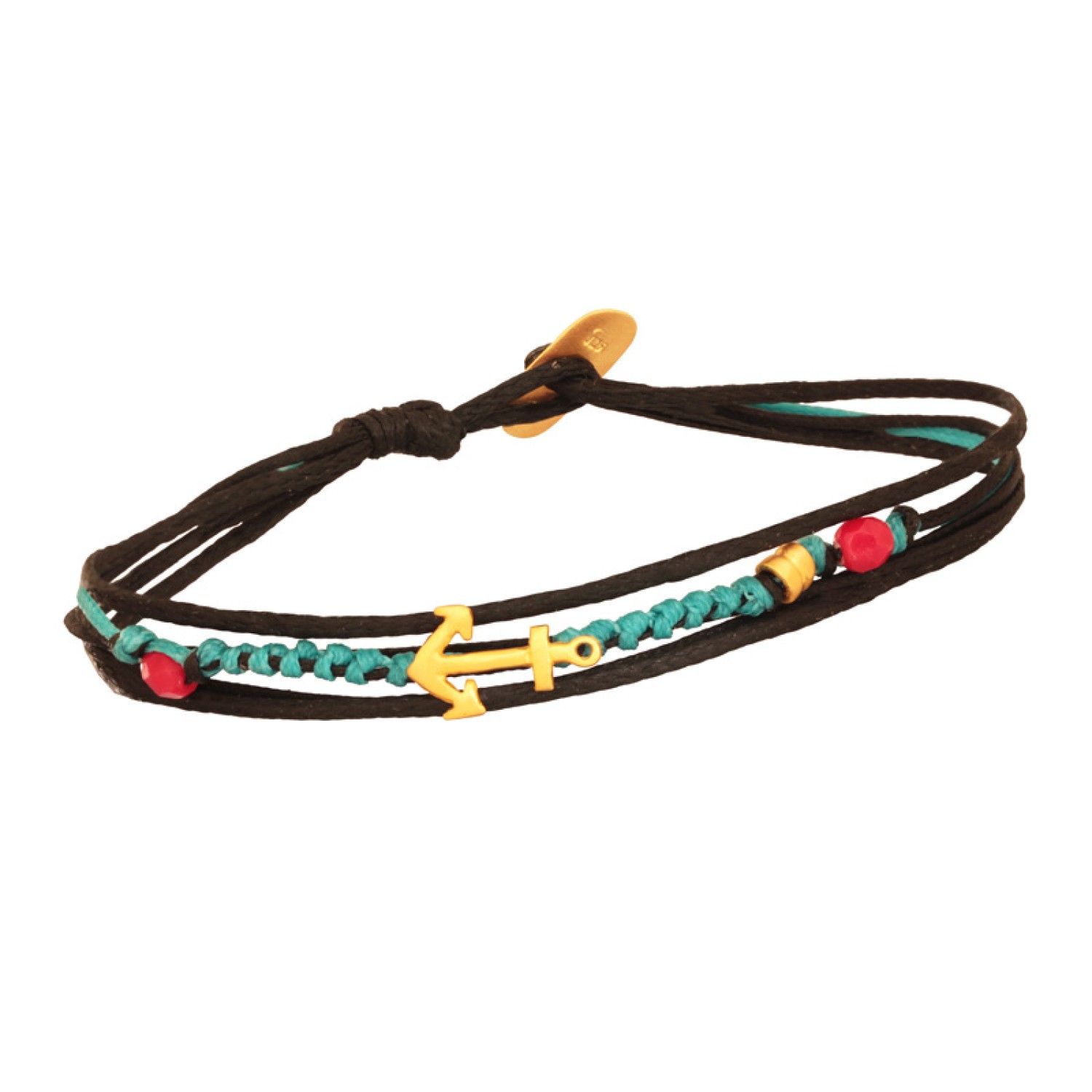 Βραχιόλι κορδόνια ασημένια επίχρυση Άγκυρα