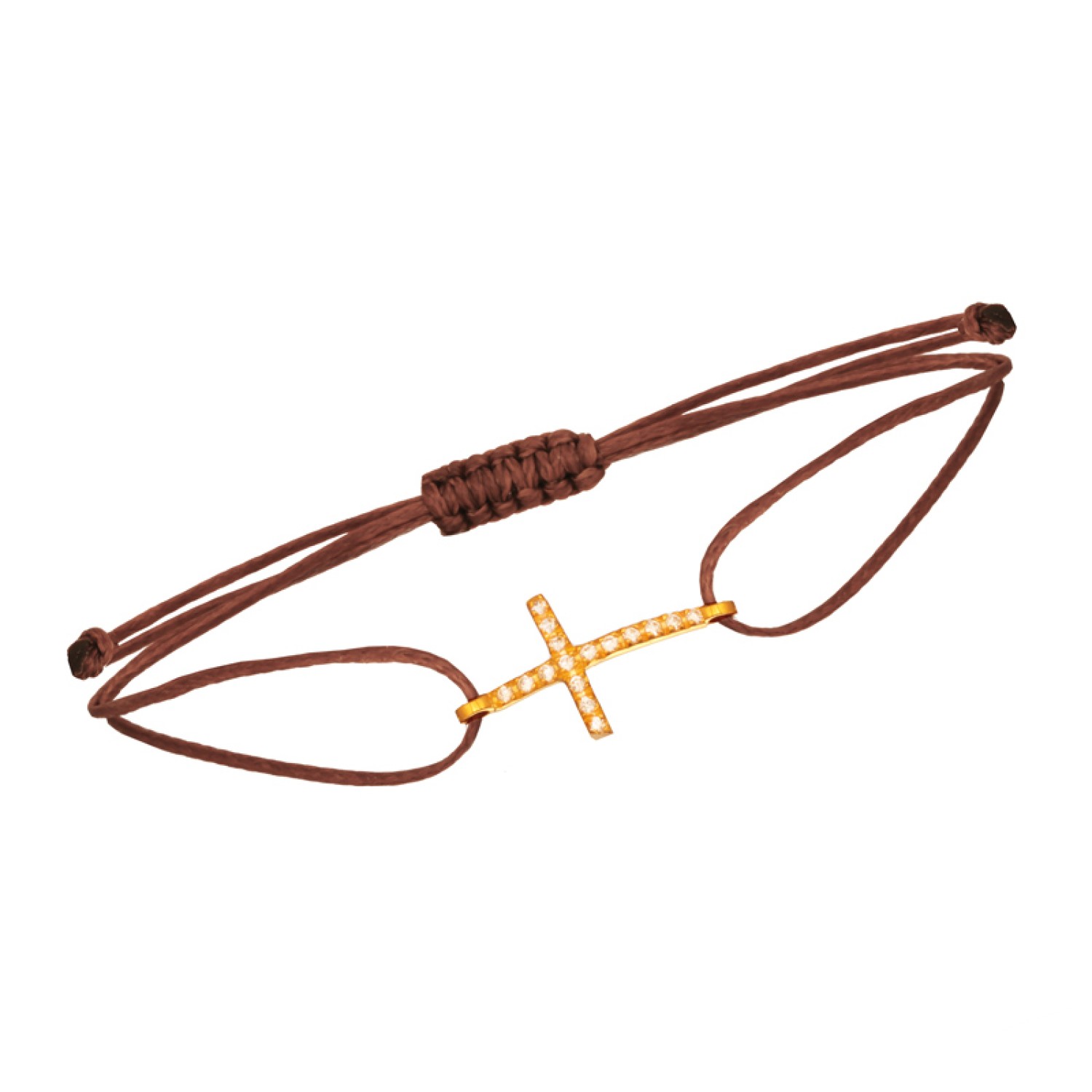 Γυναικείο βραχιόλι καφέ κηροκλωστή με χρυσό 14 καράτια Σταυρό πλάγιως. Το φίνο σύνολο συμπληρώνουν λευκά ζιργκόν να χαρίζουν διακριτική λάμψη. Ενα χειροποιήτο κόσμημα με minimal chic αισθητική που θα φοράτε για πάντα. Ενω το κομψό του μέγεθος είναι ιδανικό για κάθε εμφάνιση και στιγμή, ακόμα και για να το συνδυάσετε με άλλα. Αξίζει να αποκτήσετε αυτο το καλότυχο φυλαχτό με έντονο συμβολισμό. Μια εξαιρετική επιλογή για εσάς ή για ενα προσωπικό δώρο με πολυτέλεια. Το κερωμένο κορδόνι διαθέτει macrame πλέξη για αυξομείωση και για να το προσαρμόζετε απόλυτα στον καρπό σας.