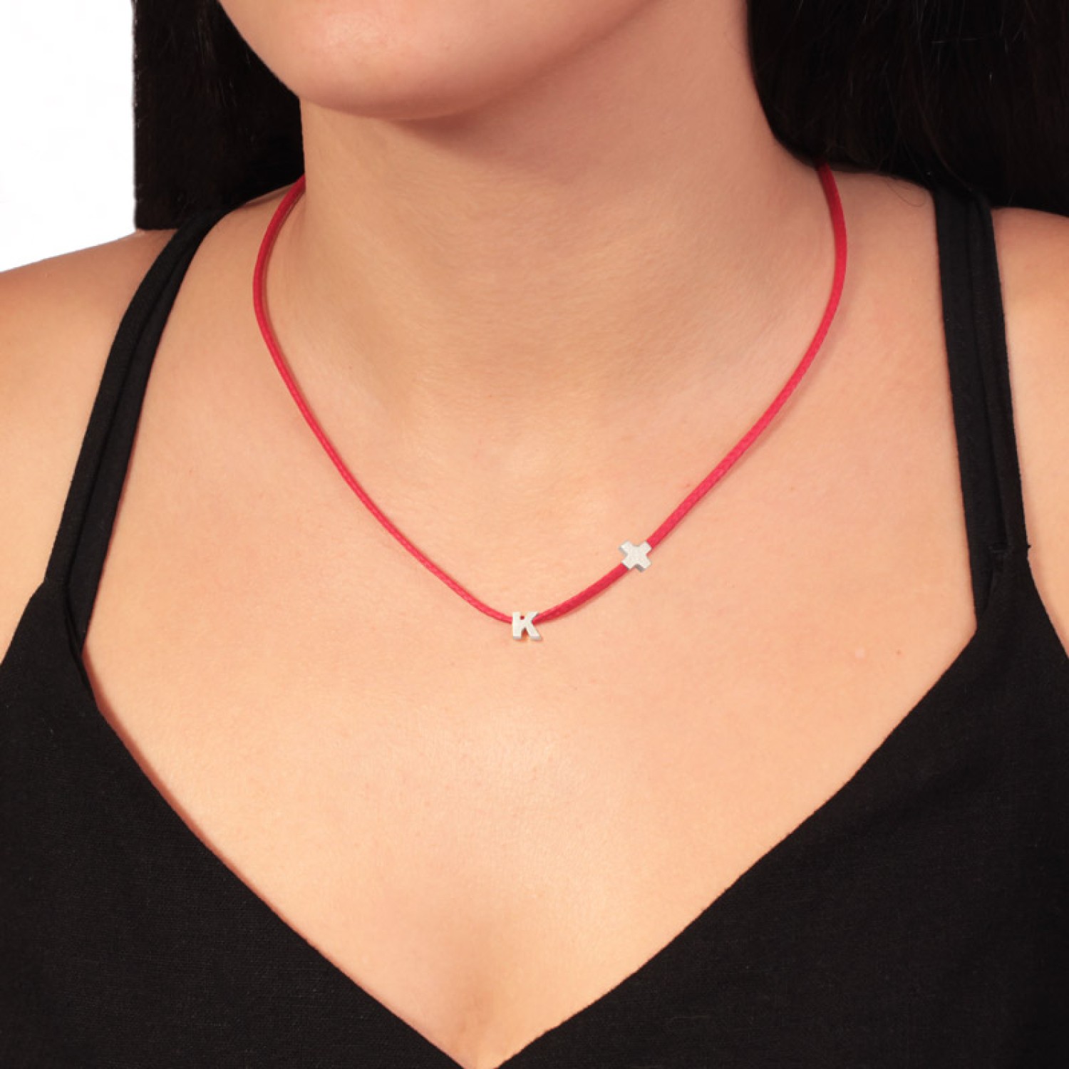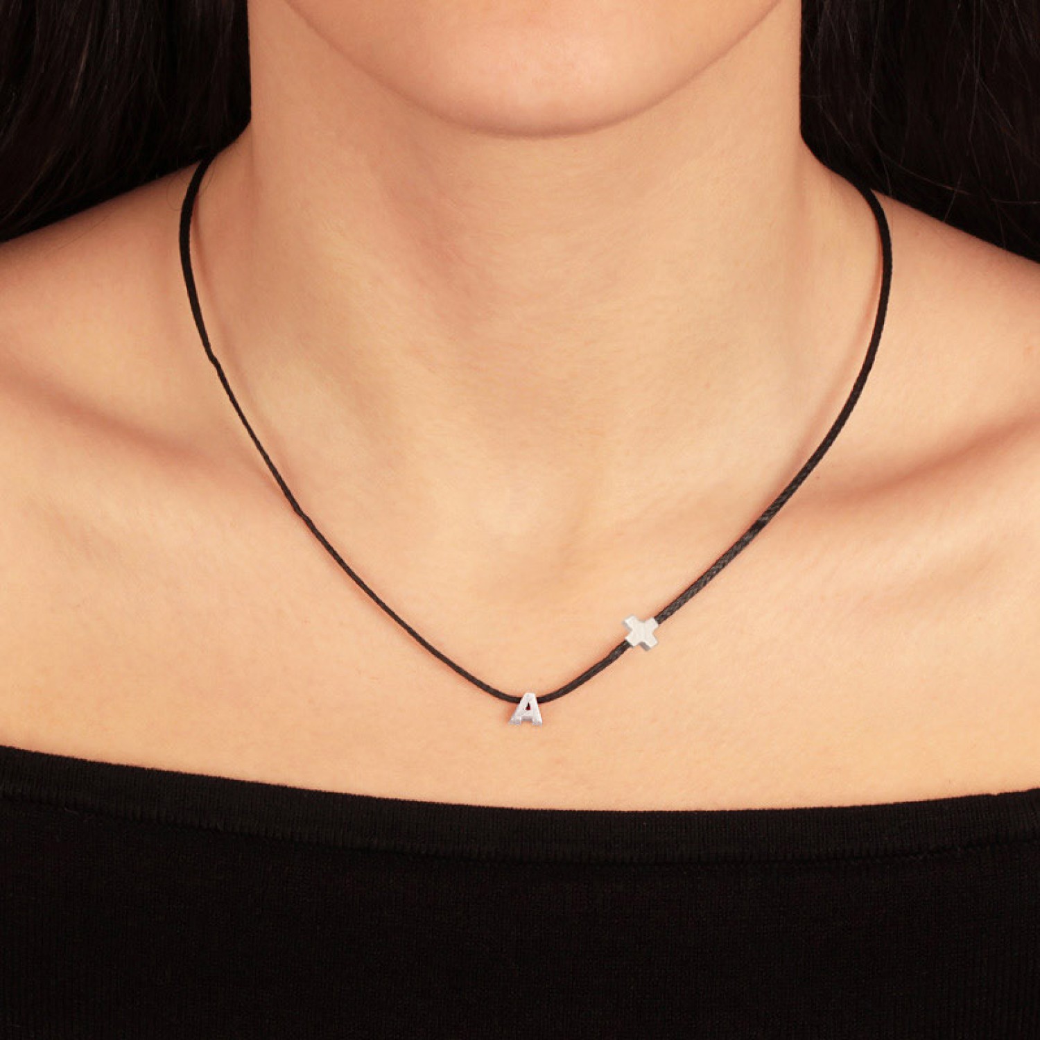 Κολιέ κορδόνι ασημένιο Αρχικό Γράμμα Γ