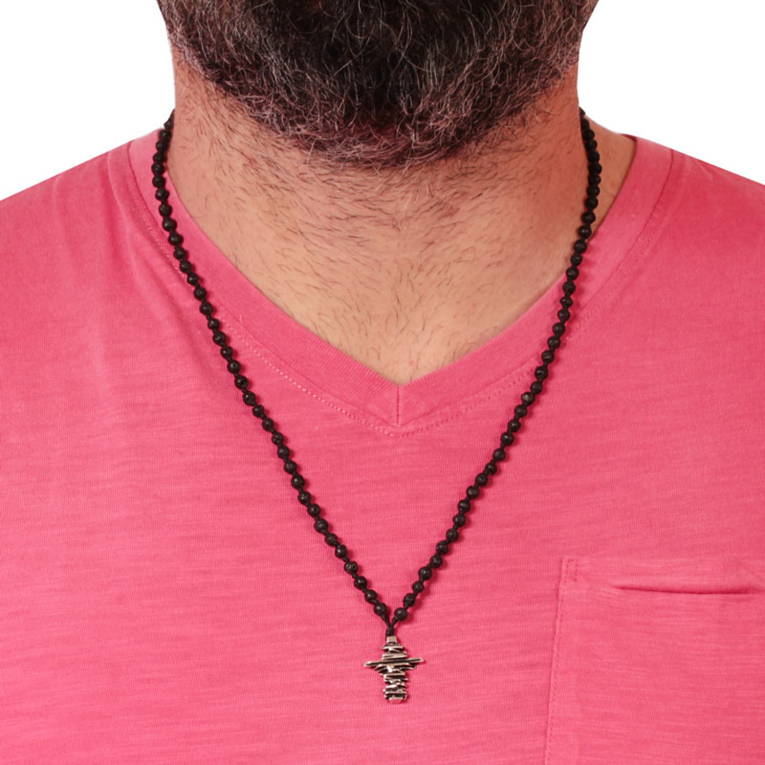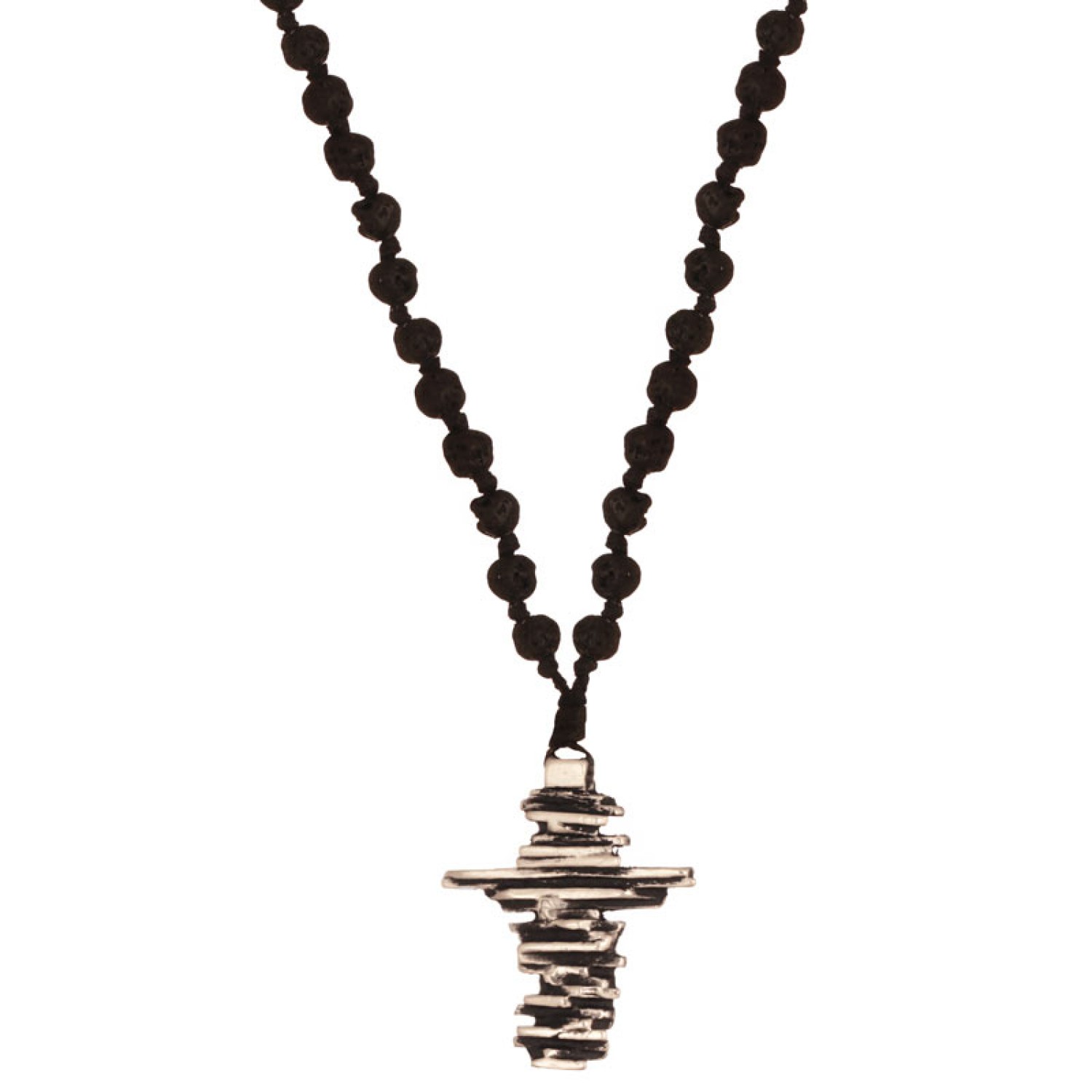 Κολιέ κορδόνι Ροζάριο ασημένιος Σταυρός