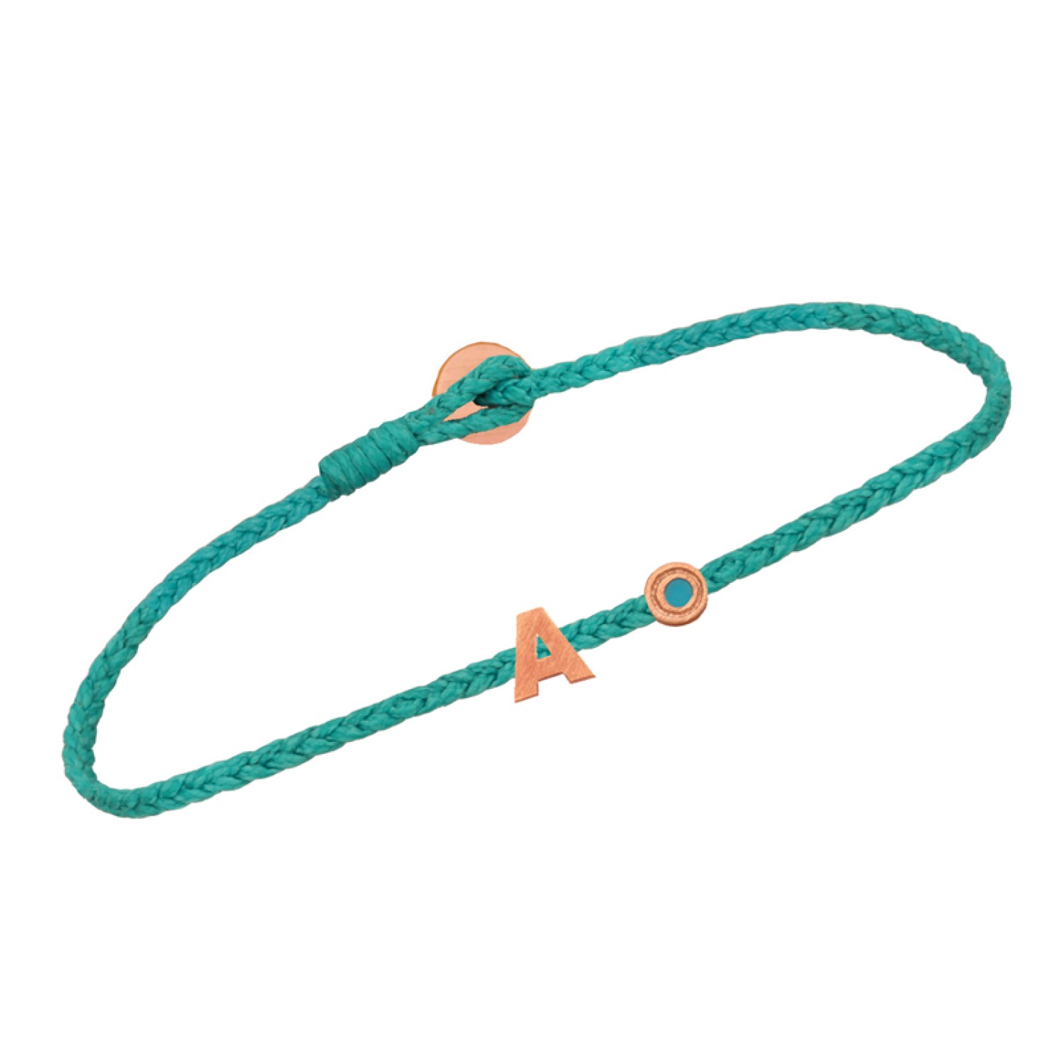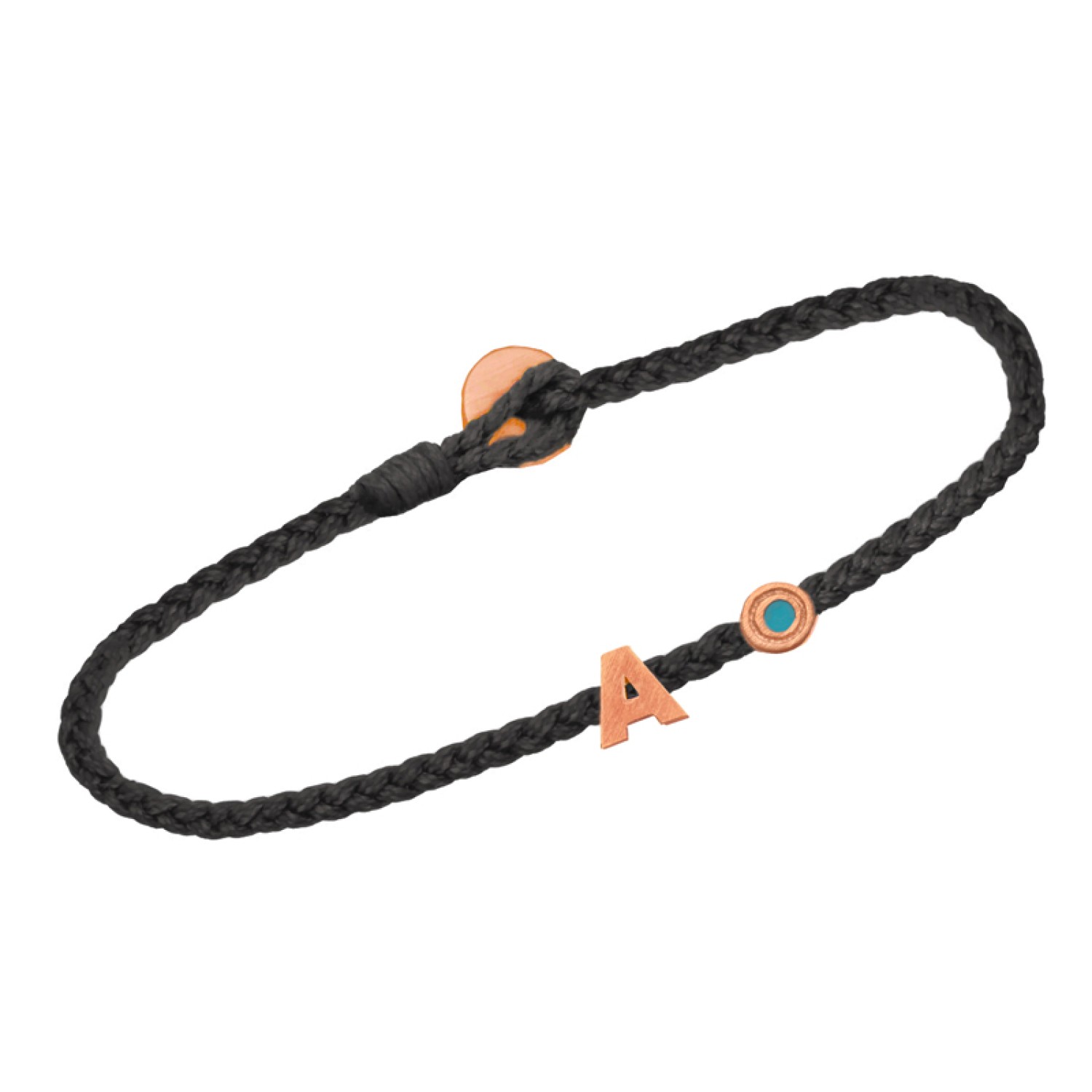Ασημένιο ρόζ επιχρυσωμένο βραχιόλι κορδόνι Μονόγραμμα Α