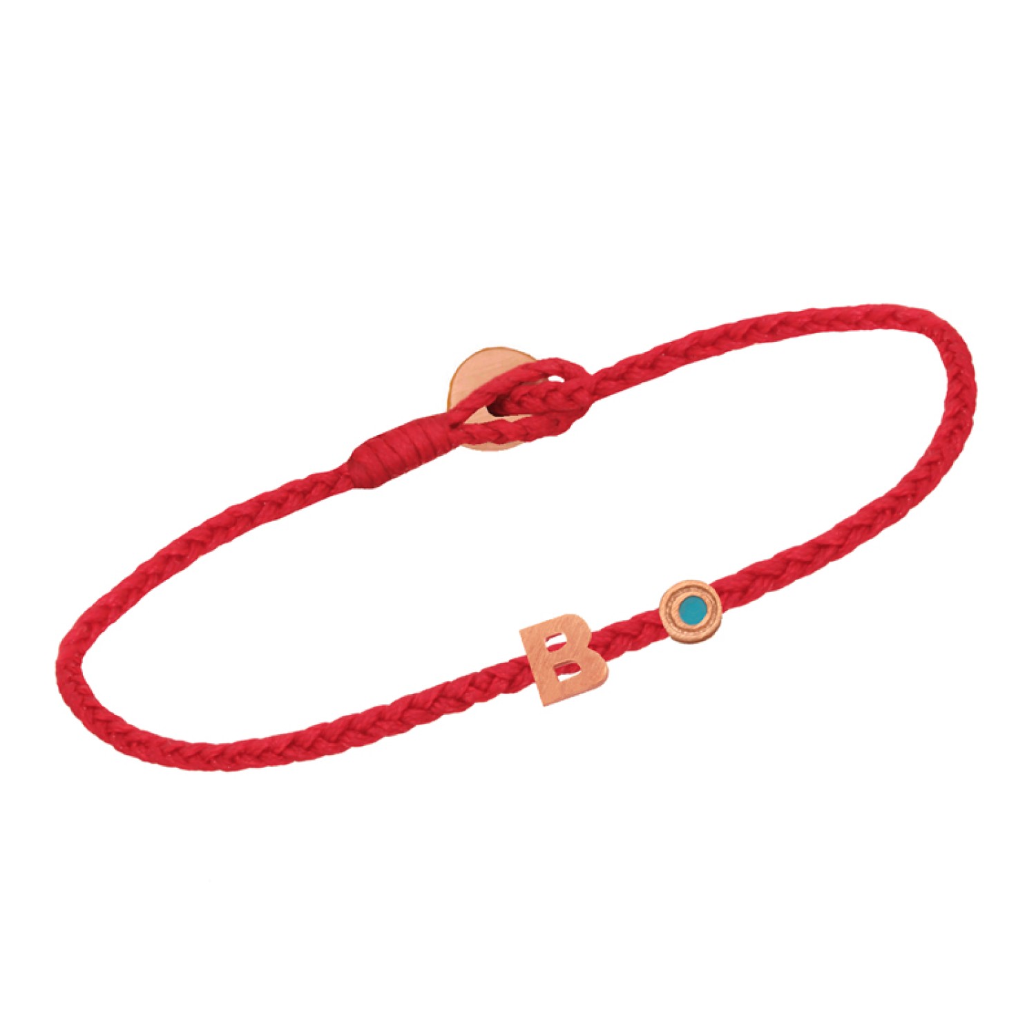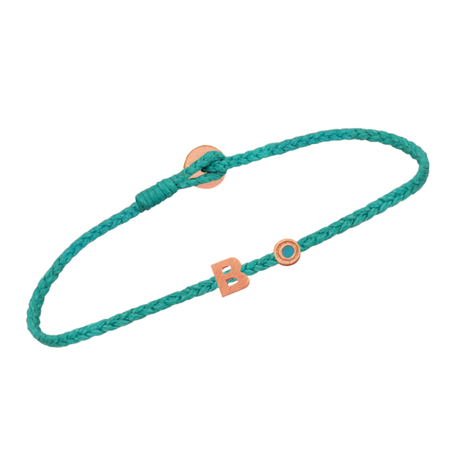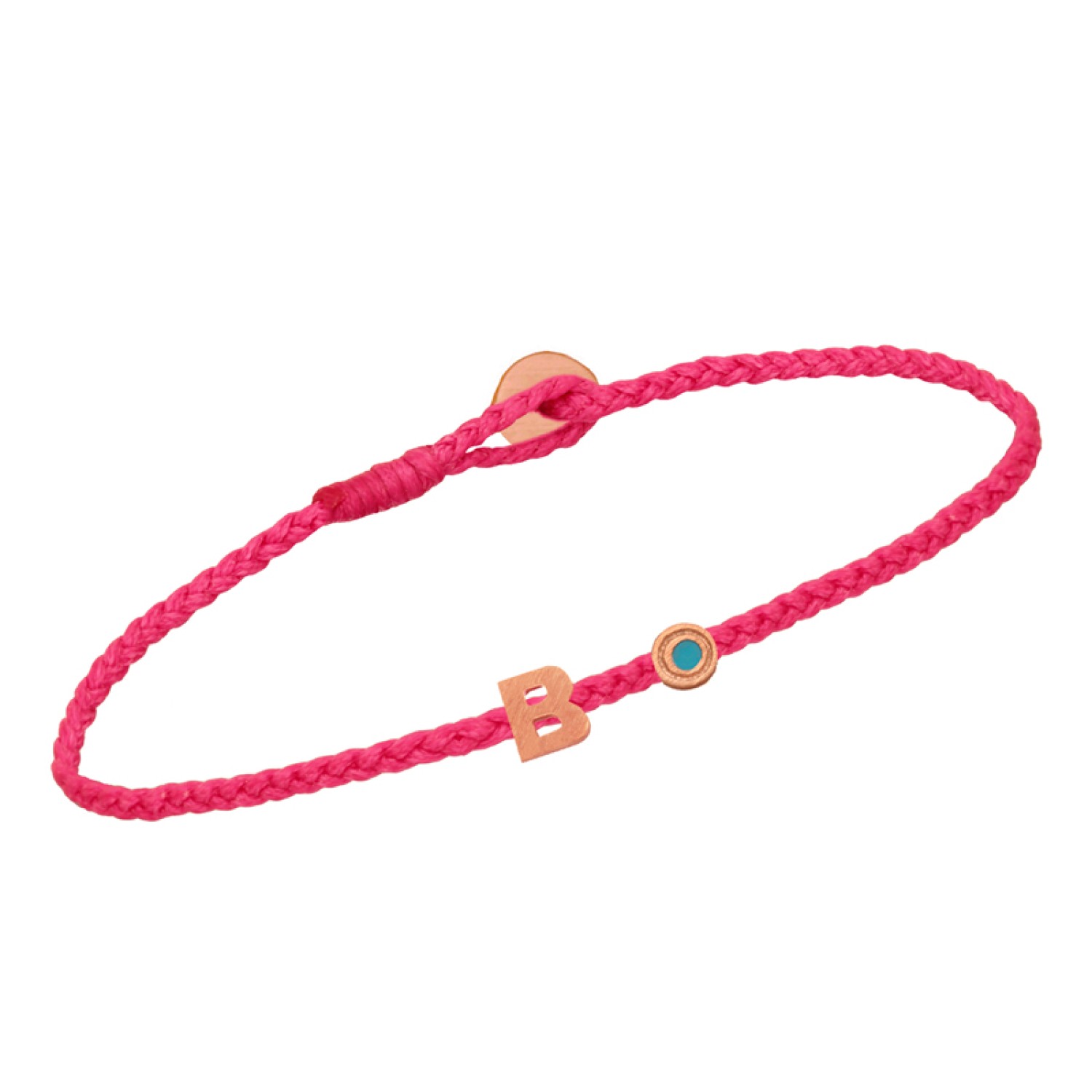 Ασημένιο ρόζ επιχρυσωμένο βραχιόλι κορδόνι Μονόγραμμα Β