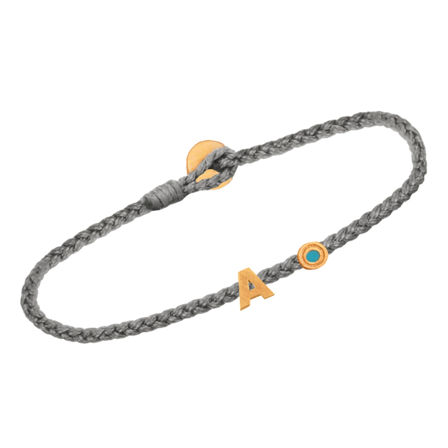 Βραχιόλι κορδόνι ασημένιο επίχρυσο Μονόγραμμα Α