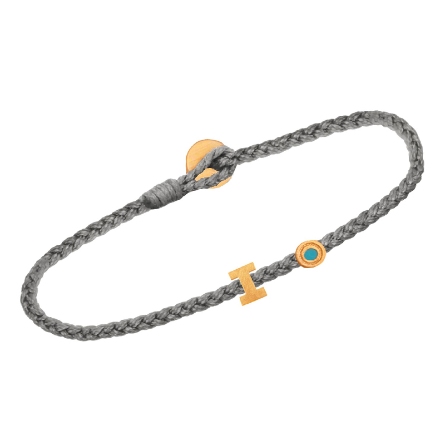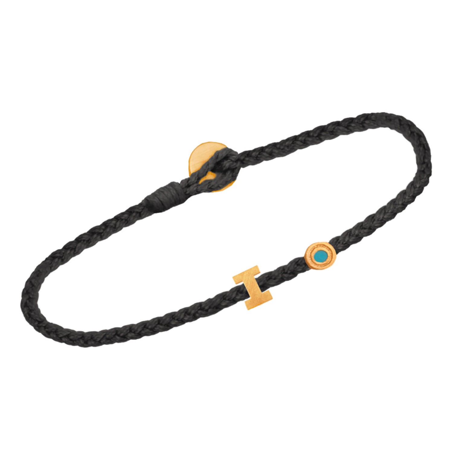 Βραχιόλι κορδόνι ασημένιο επίχρυσο Μονόγραμμα Ι