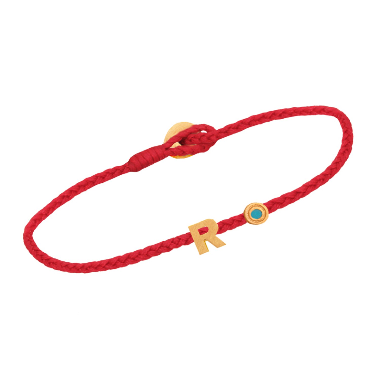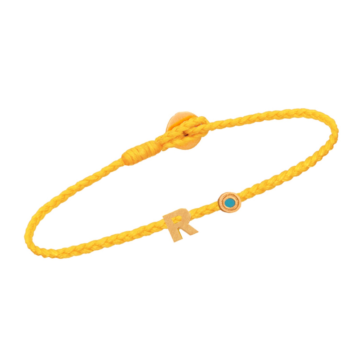 Βραχιόλι κορδόνι ασημένιο επίχρυσο Μονόγραμμα R