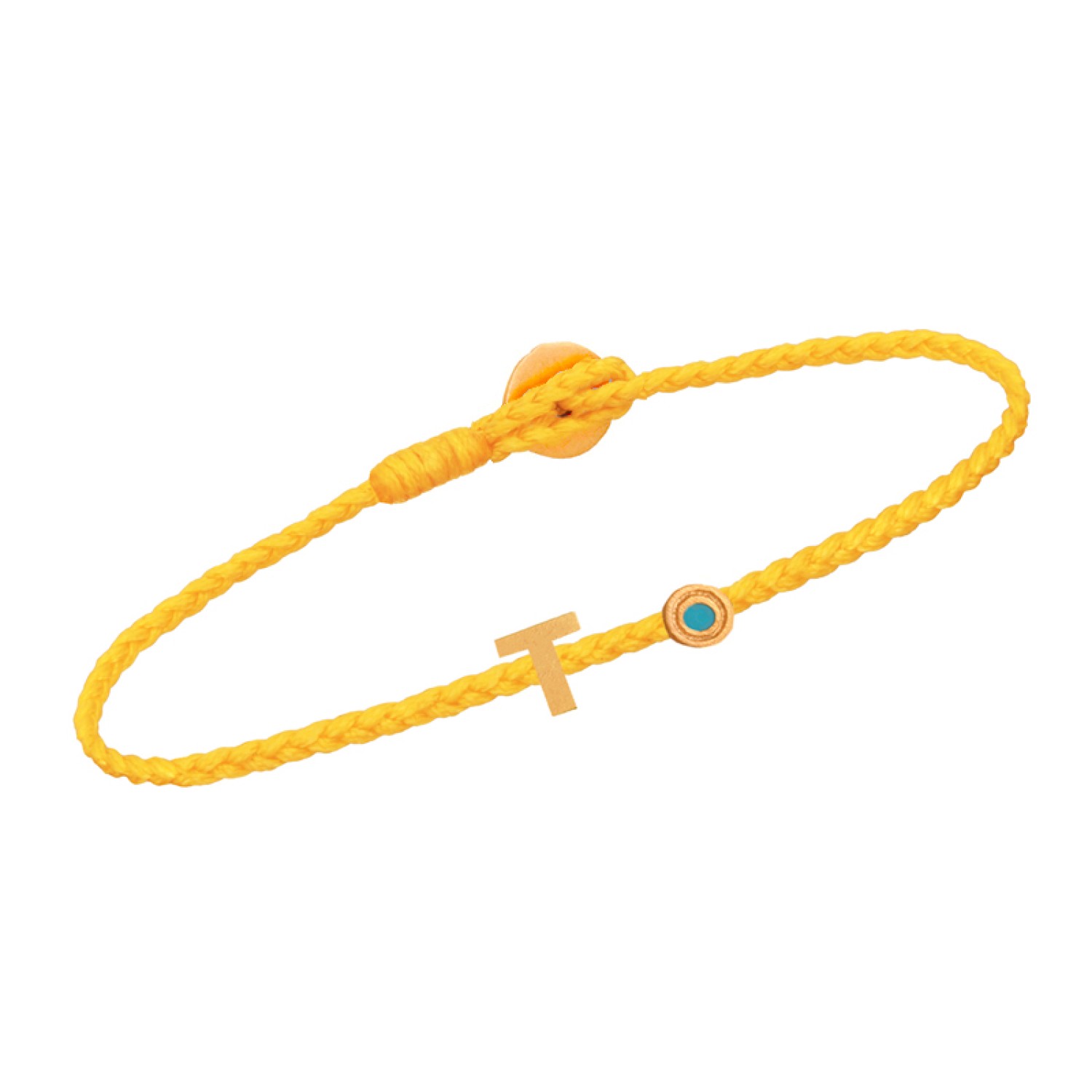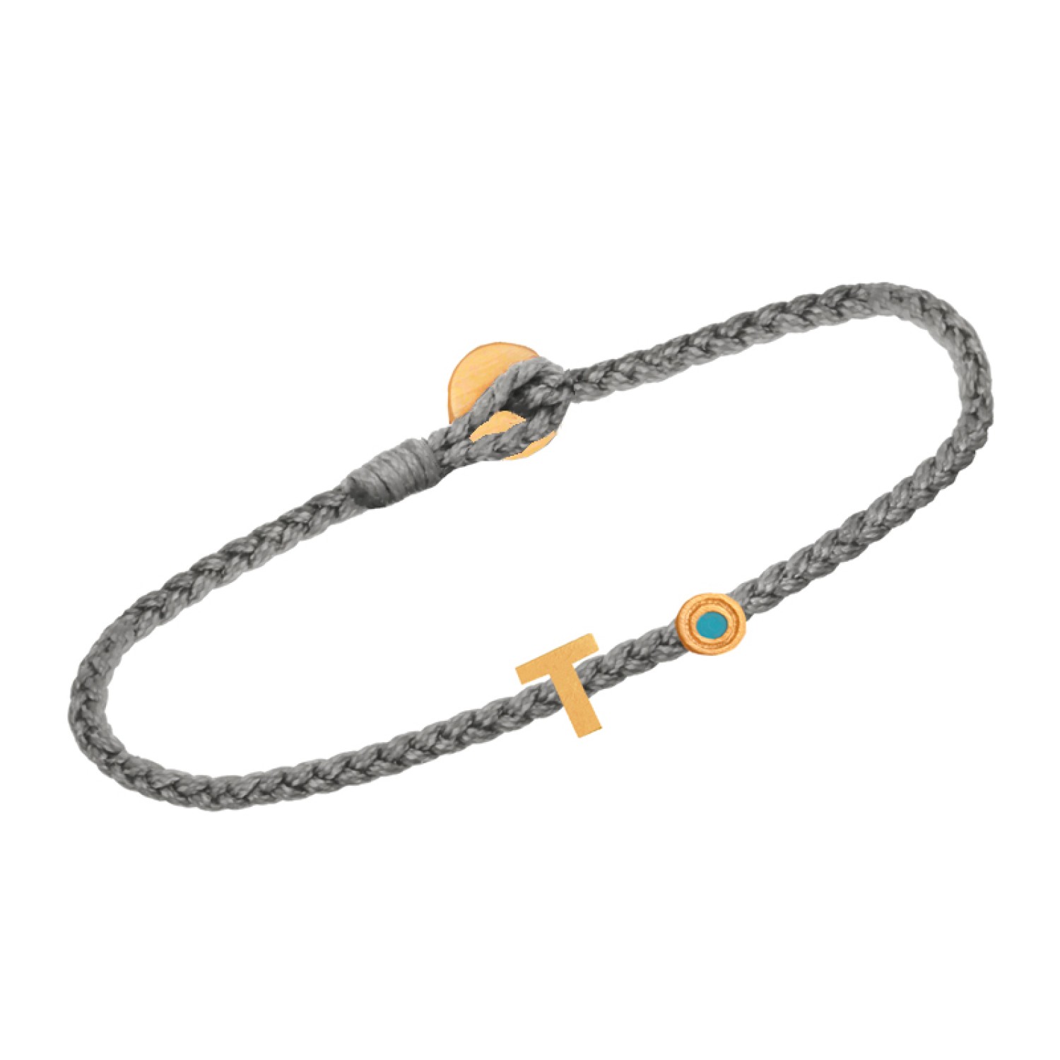 Βραχιόλι κορδόνι ασημένιο επίχρυσο Μονόγραμμα Τ