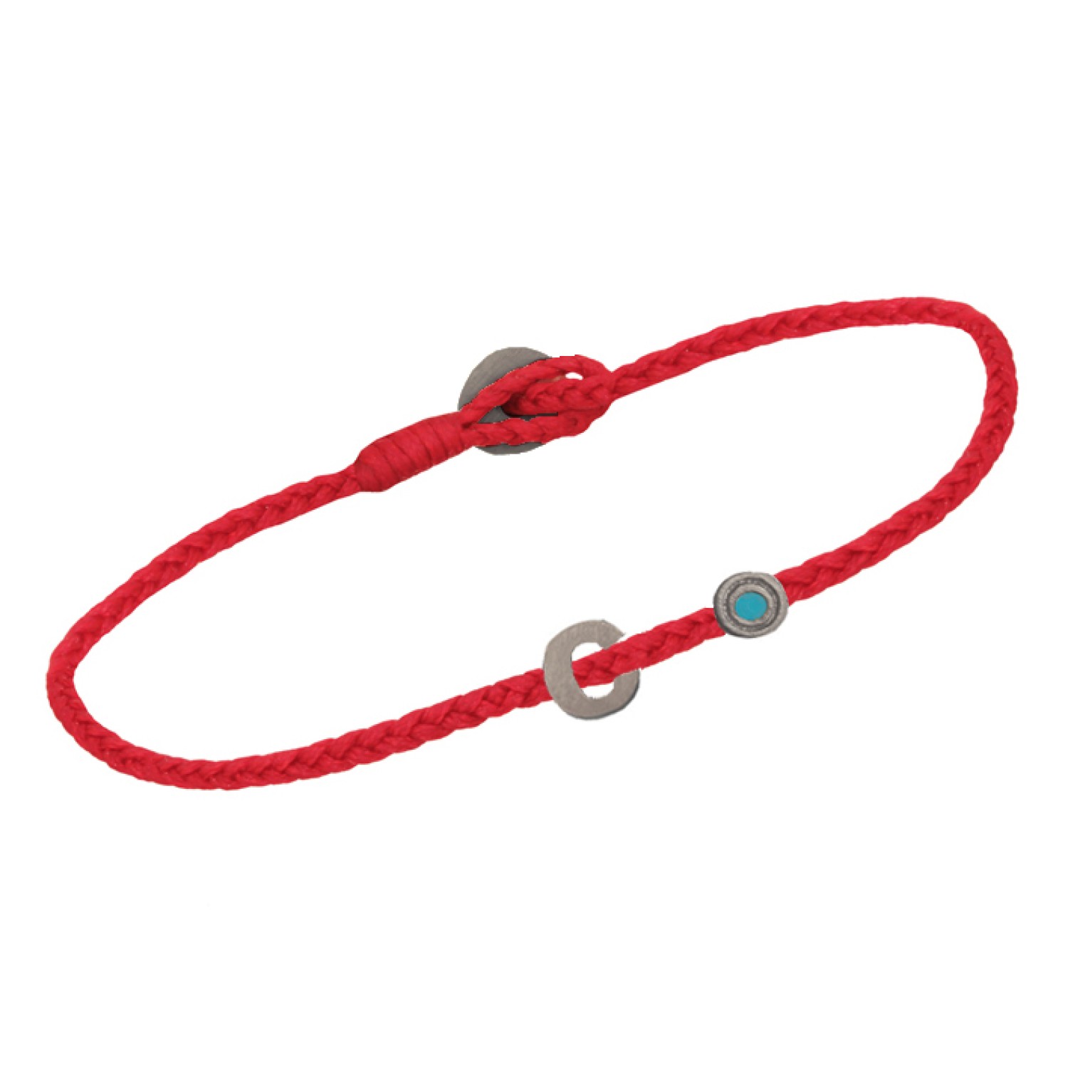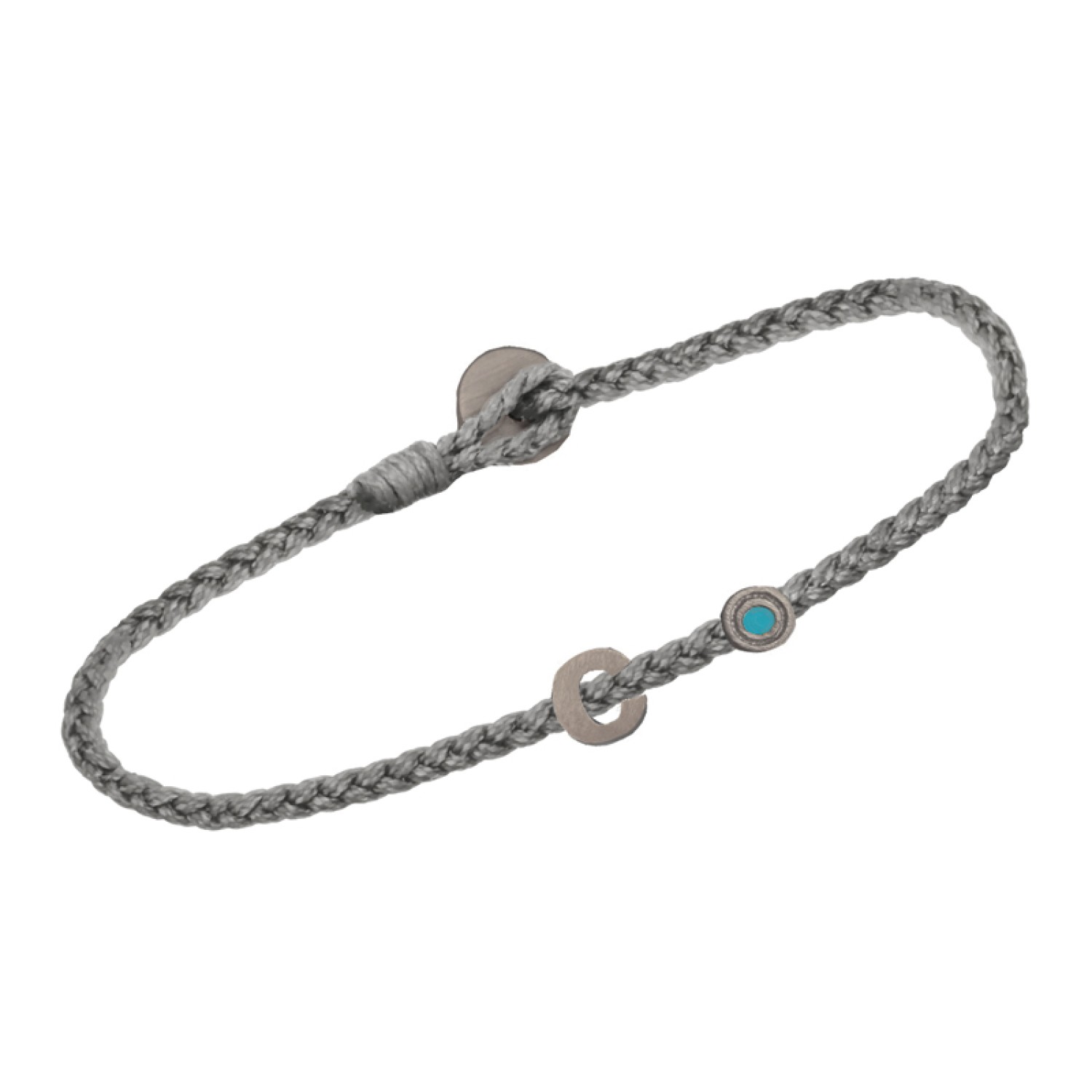 Βραχιόλι κορδόνι ασημένιο μαύρο επιπλατινωμένο Γράμμα C