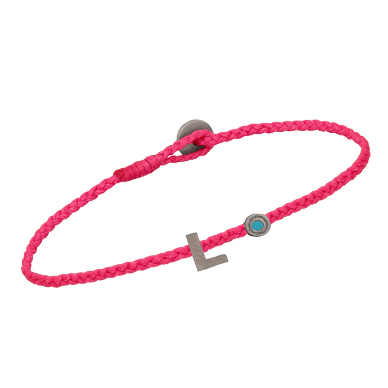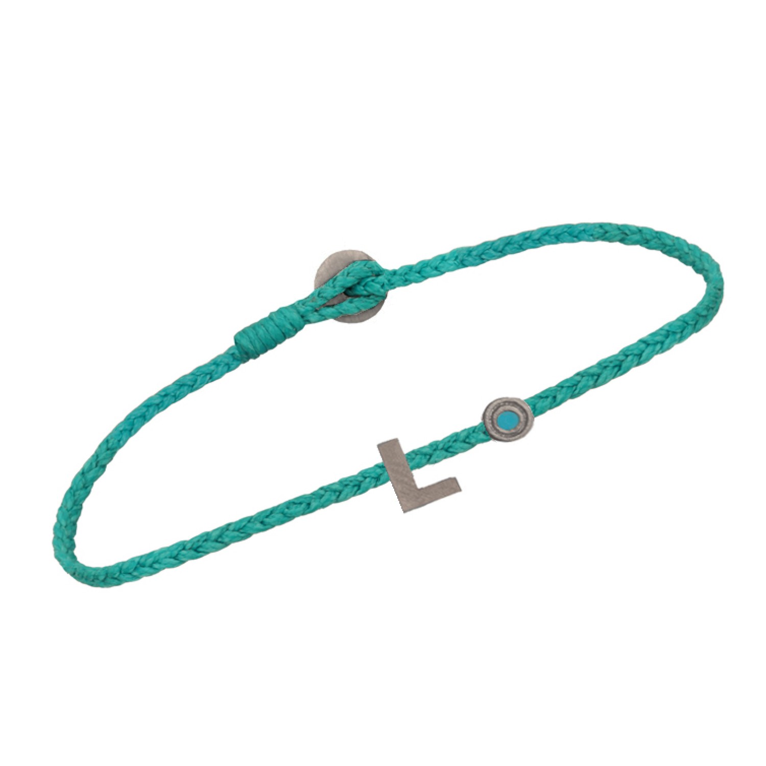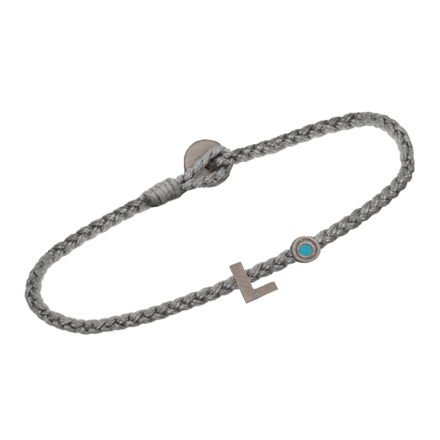 Βραχιόλι κορδόνι ασημένιο μαύρο επιπλατινωμένο Γράμμα L