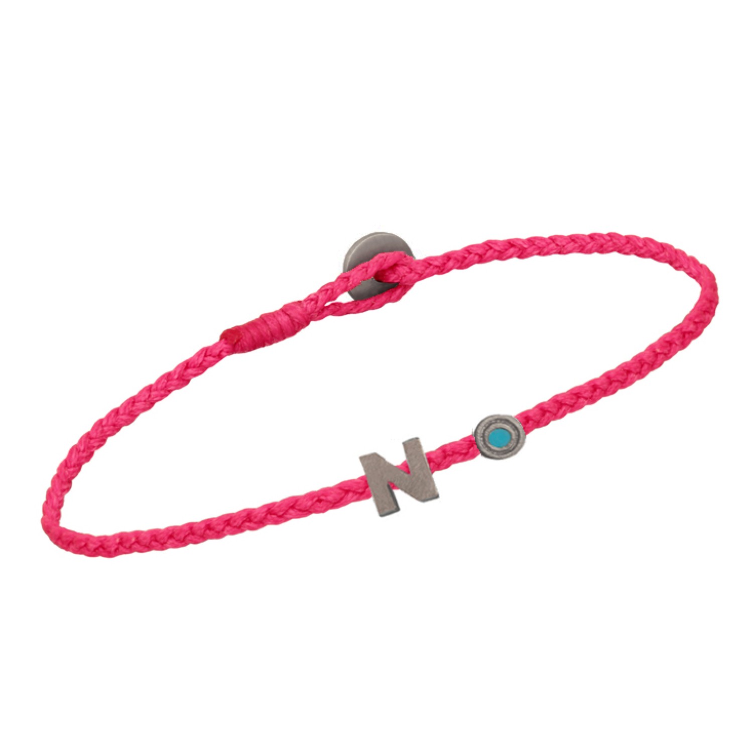 Βραχιόλι κορδόνι ασημένιο μαύρο επιπλατινωμένο Γράμμα Ν