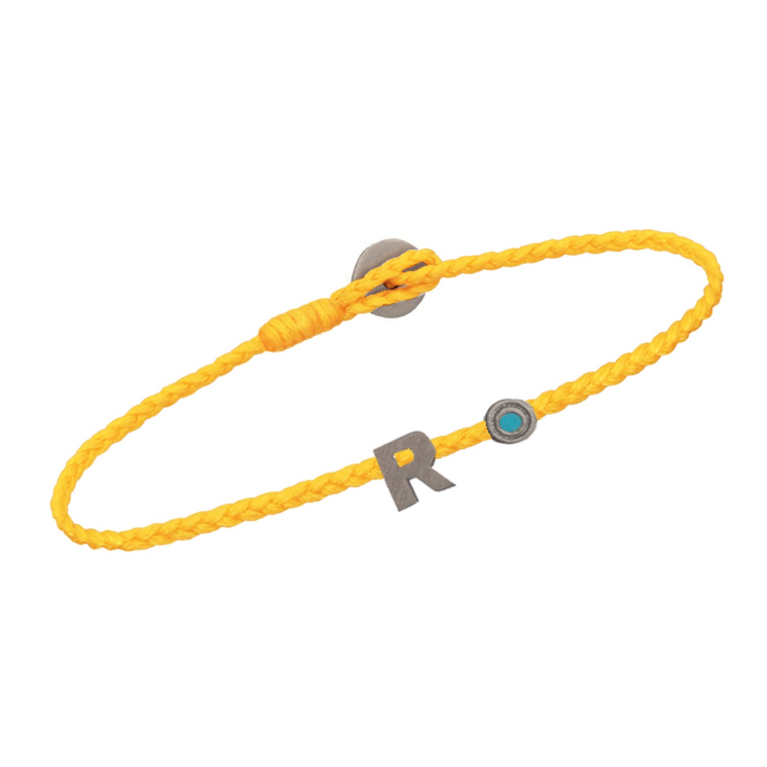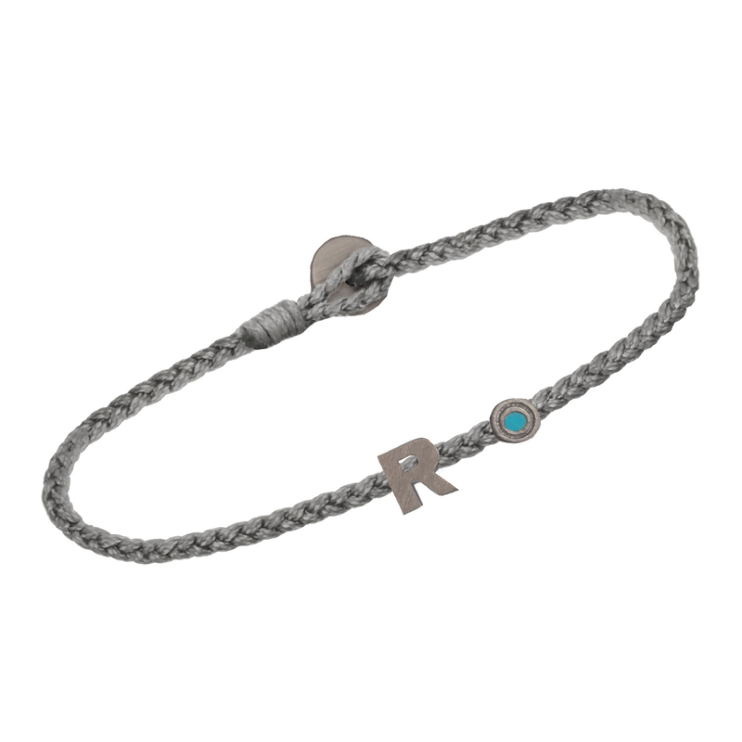 Βραχιόλι κορδόνι ασημένιο μαύρο επιπλατινωμένο Γράμμα R