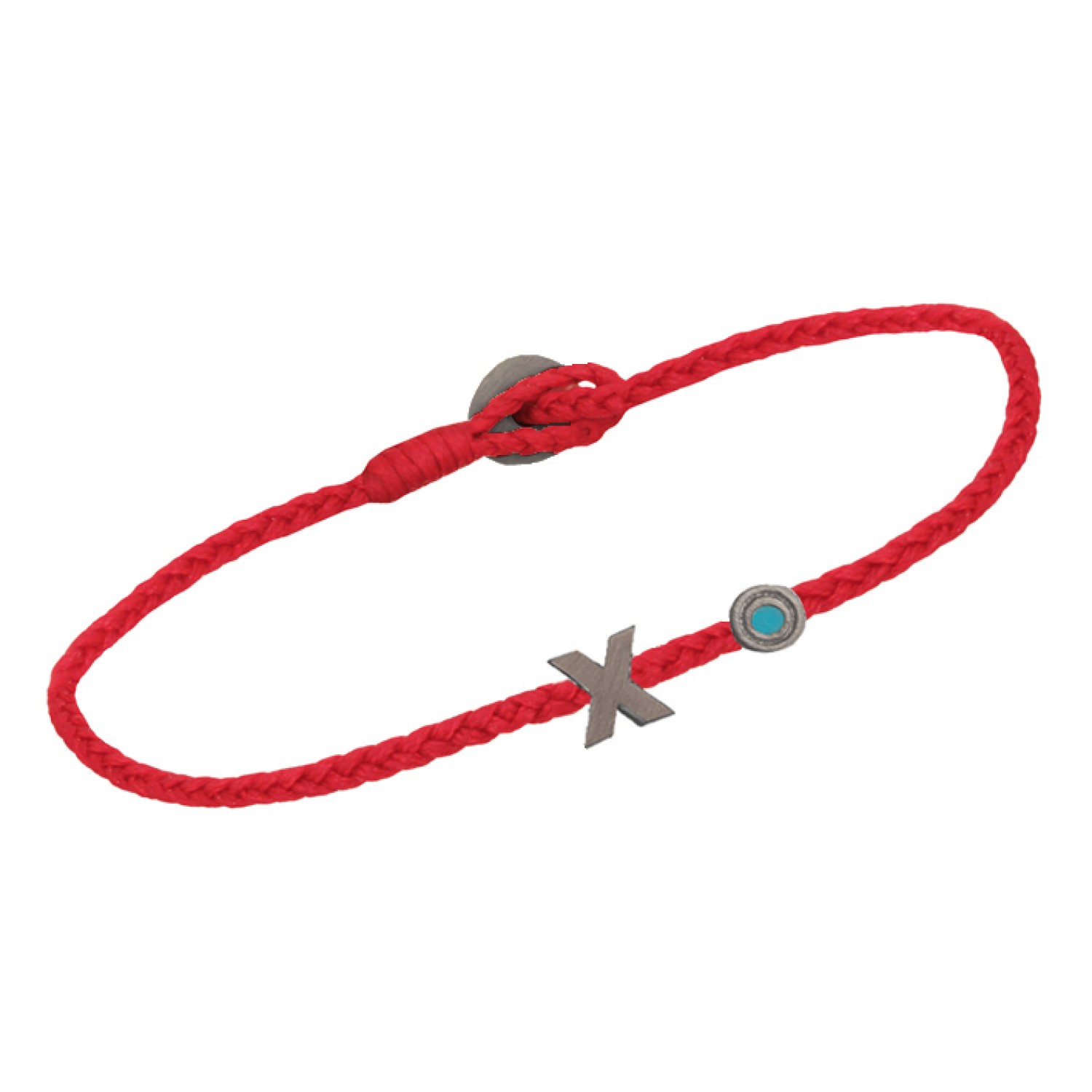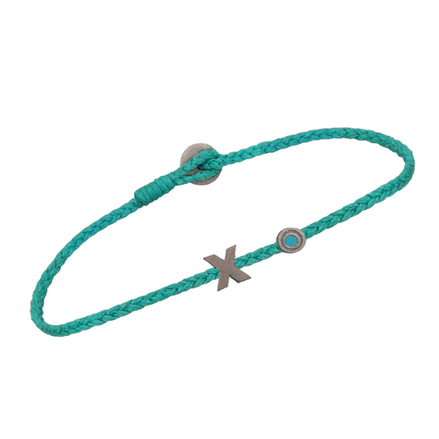 Βραχιόλι γκρί κηροκλωστή πλεξούδα με ασημένιο 925 μαύρο επιπλατινωμένο περαστό Αρχικό Μονόγραμμα Χ και Μάτι σμάλτο. Διακριτικό και διαχρονικό, θα γίνει το καλότυχο φυλαχτό σας τώρα και για πάντα. Υπογραμμίστε κάθε σας εμφάνιση με αυτό το συναισθηματικό θησαυρό που θα χαρίσει πόντους στύλ σε κάθε εμφάνιση. Προτείνουμε να το χαρίσετε και ως ένα προσωποιημένο δώρο με προσιτή τιμή και πολυτέλεια. Το κομψό μέγεθος του είναι ιδανικό για να το συνδυάσετε και με άλλα και να μην το αποχωριστείτε λεπτό. Διαλέξτε το χρώμα του κορδονιού που επιθυμείτε να το συνδυάσετε.