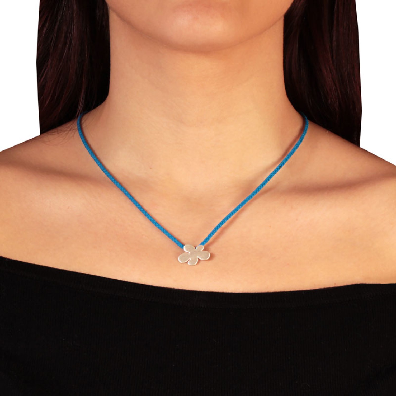 Κολιέ κορδόνι ασημένιο Λουλούδι