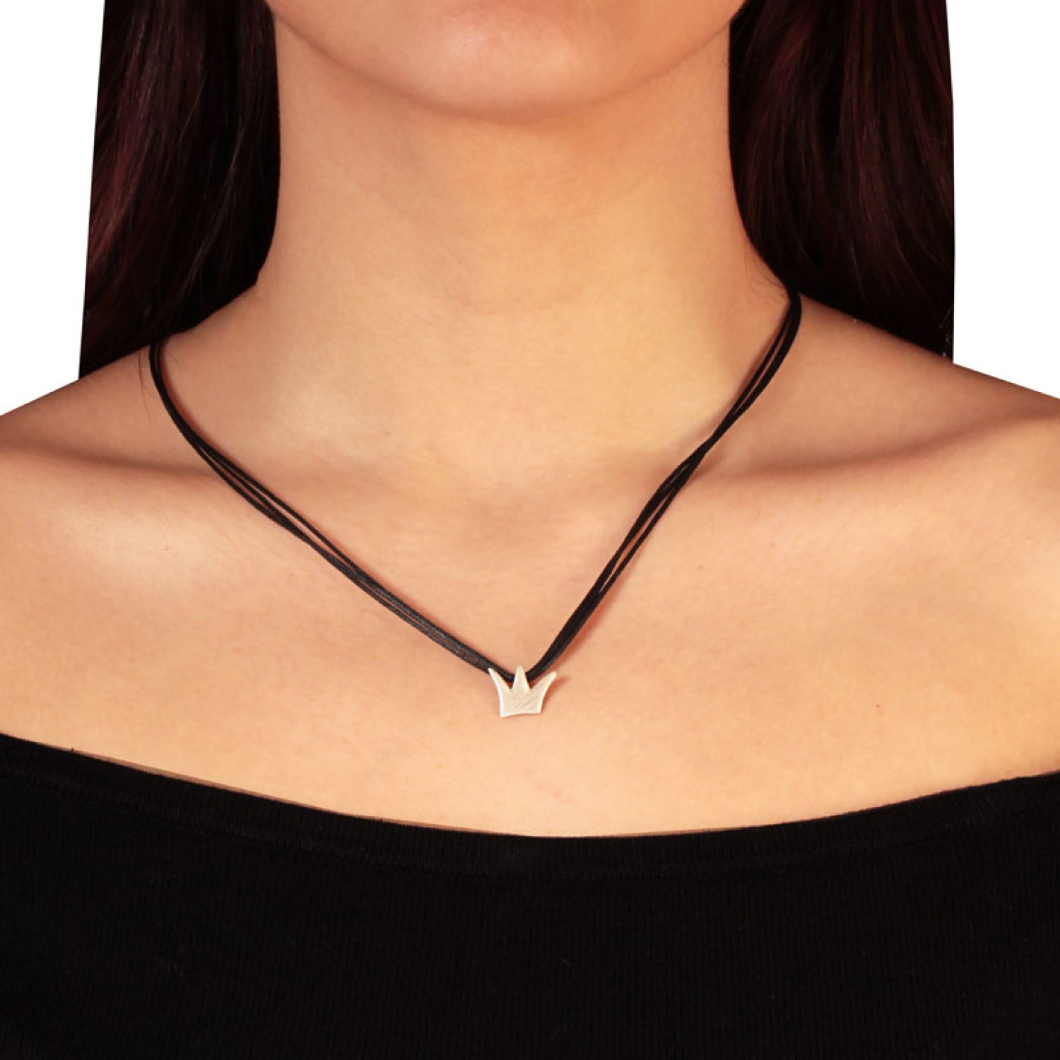 Κολιέ κορδόνια ασημένια Κορώνα