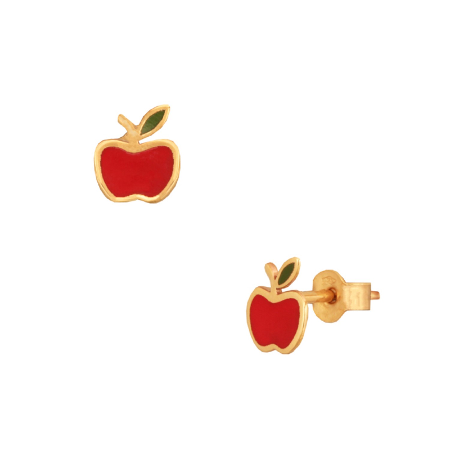 Παιδικά χρυσά 9 καράτια καρφωτά σκουλαρίκια Μήλα φιλοτεχνημένα με σμάλτο. Ενα υπέροχο κόσμημα που συνδυάζει χαρούμενο συμβολισμό και λαμπερό χρώμα. Το κομψό μέγεθος είναι ιδανικό για κάθε ημέρα και στιγμή. Μια διαχρονική επιλογή για την κοσμηματοθήκη της κόρης σας. Προτείνουμε να τα χαρίσετε και ως ενα πολυτελής δώρο Γέννησης ή Βάπτησις για Κορίτσι.