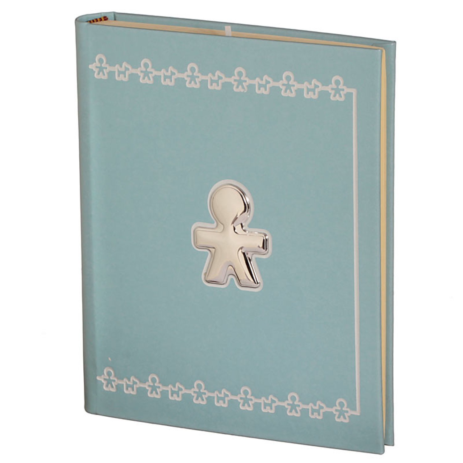 Παιδικό γαλάζιο δερμάτινο άλμπουμ φωτογραφιών στολισμένο με ασημένιο 925 Αγόρι. Στο εσωτερικό διαθέτει ριζόχαρτα φύλλα για να τοποθετήσετε με διάφανες γωνίες φωτογραφίες σε διάφορα μεγέθη, για ενα μοναδικό αποτέλεσμα. Ενα υπέροχο διακοσμητικό με χρηστικότητα για να κρατήσετε ζωντανές τις πιο όμορφες αναμνήσεις του παιδιού σας. Μια εξαιρετική επιλογή και για ενα διαχρονικό δώρο Γέννησης ή Βάπτιση με πολυτέλεια και νόημα.