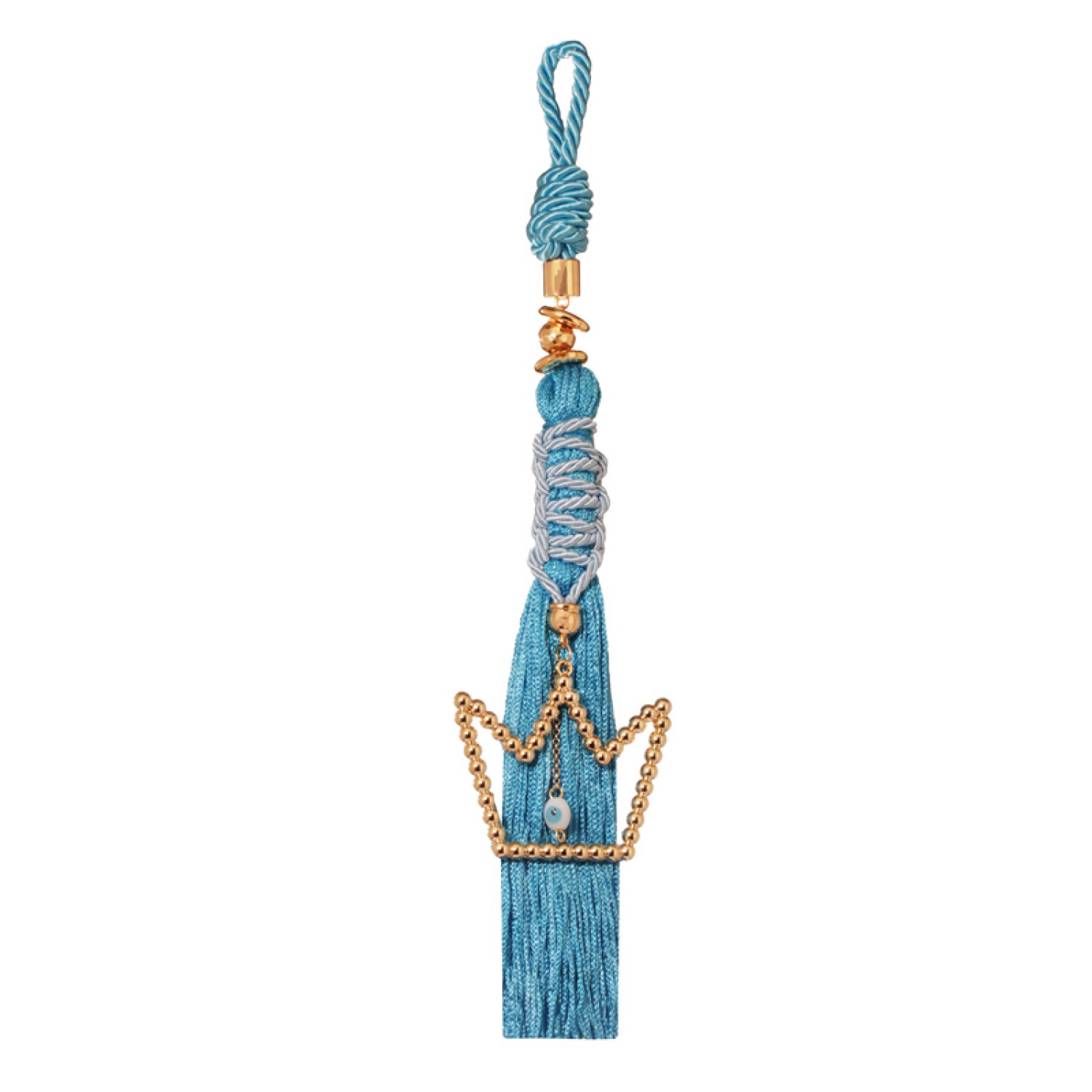 Παιδικό κρεμαστό διακοσμητικό με επίχρυση ορειχάλκινη Κορώνα και Μάτι, στολισμένη σε γαλάζια σατέν φούντα θηλιά. Ενα υπέροχο στολίδι που συνδυάζει παιδικότητα και συμβολισμό.