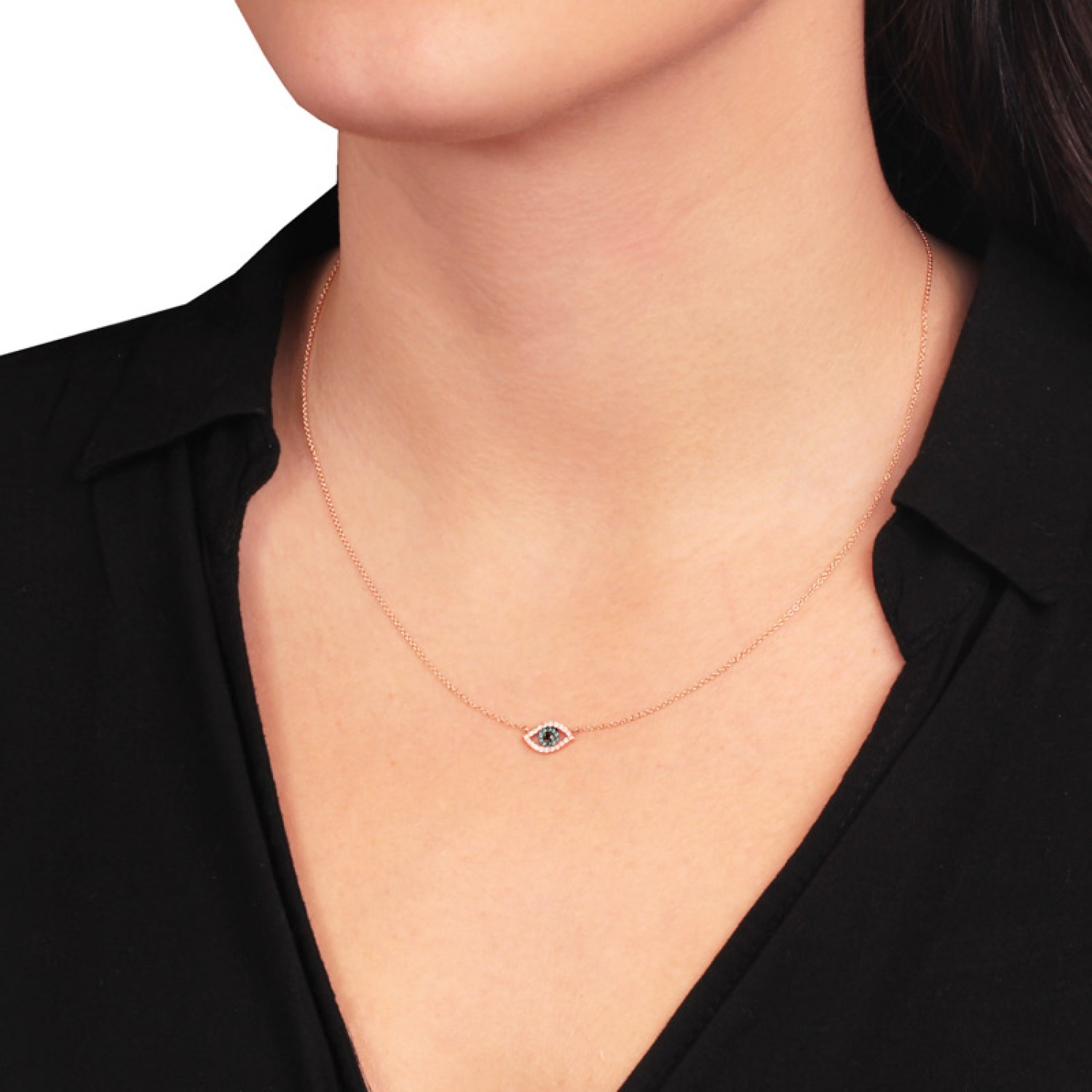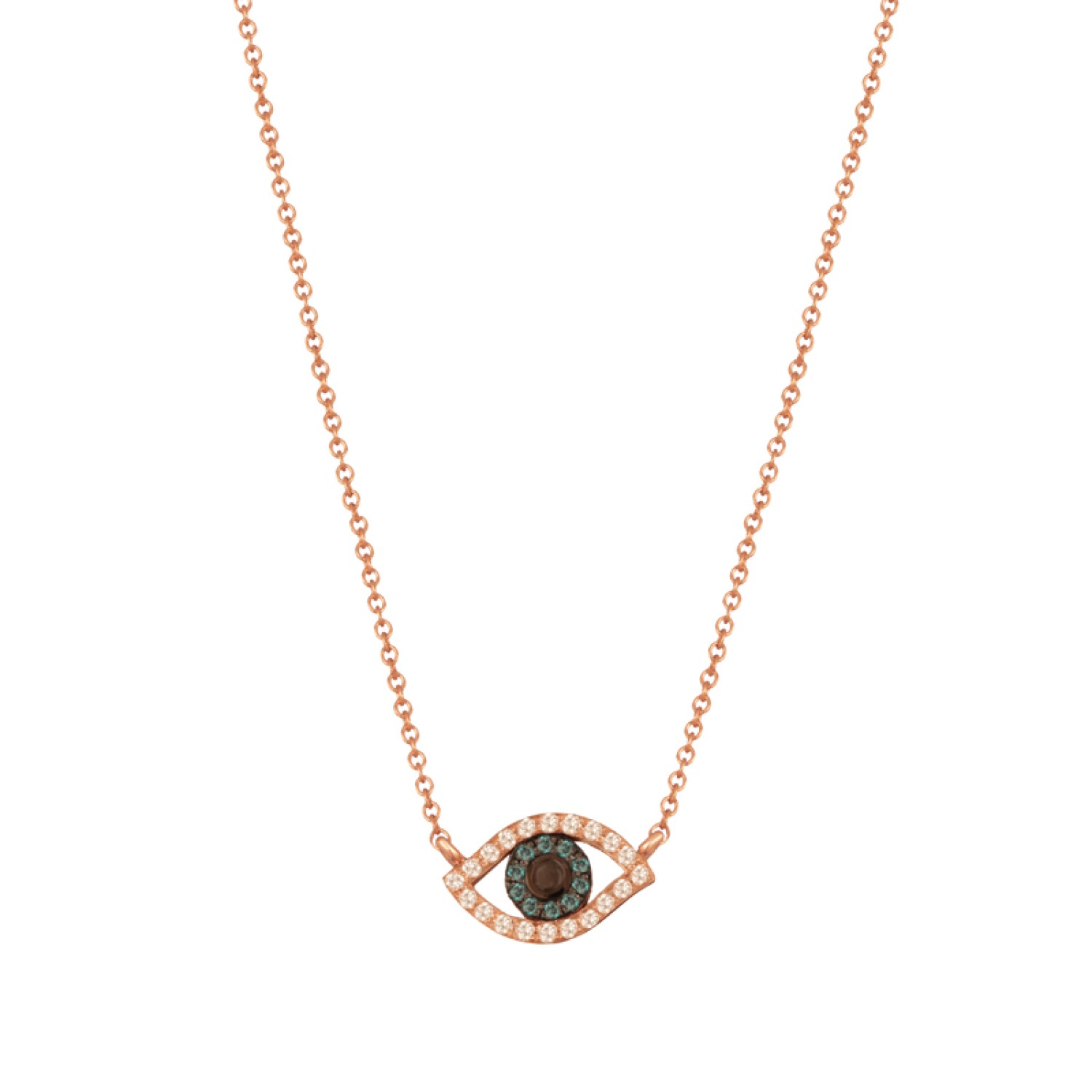 Ρόζ χρυσό 18k κολιέ Μάτι Διαμάντια Ζαφείρια