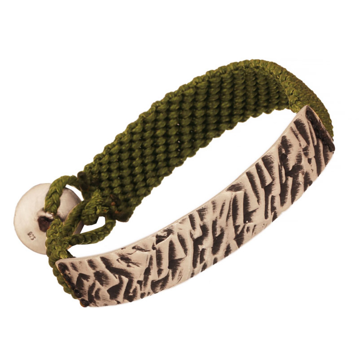 Βραχιόλι κορδόνι ασημένια Μπάρα Ταυτότητα