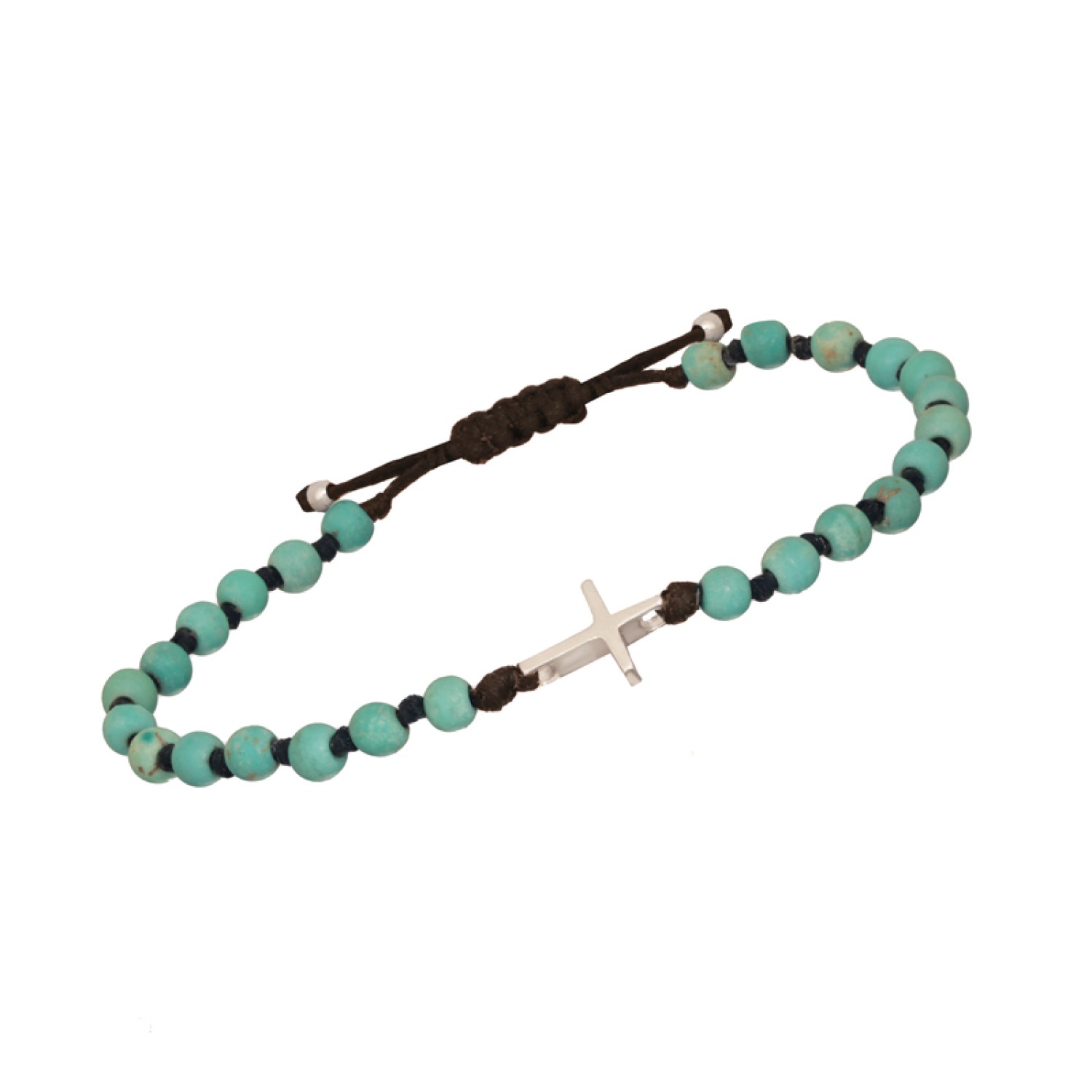 Βραχιόλι κορδόνι ασημένιος Σταυρός Τιρκουάζ
