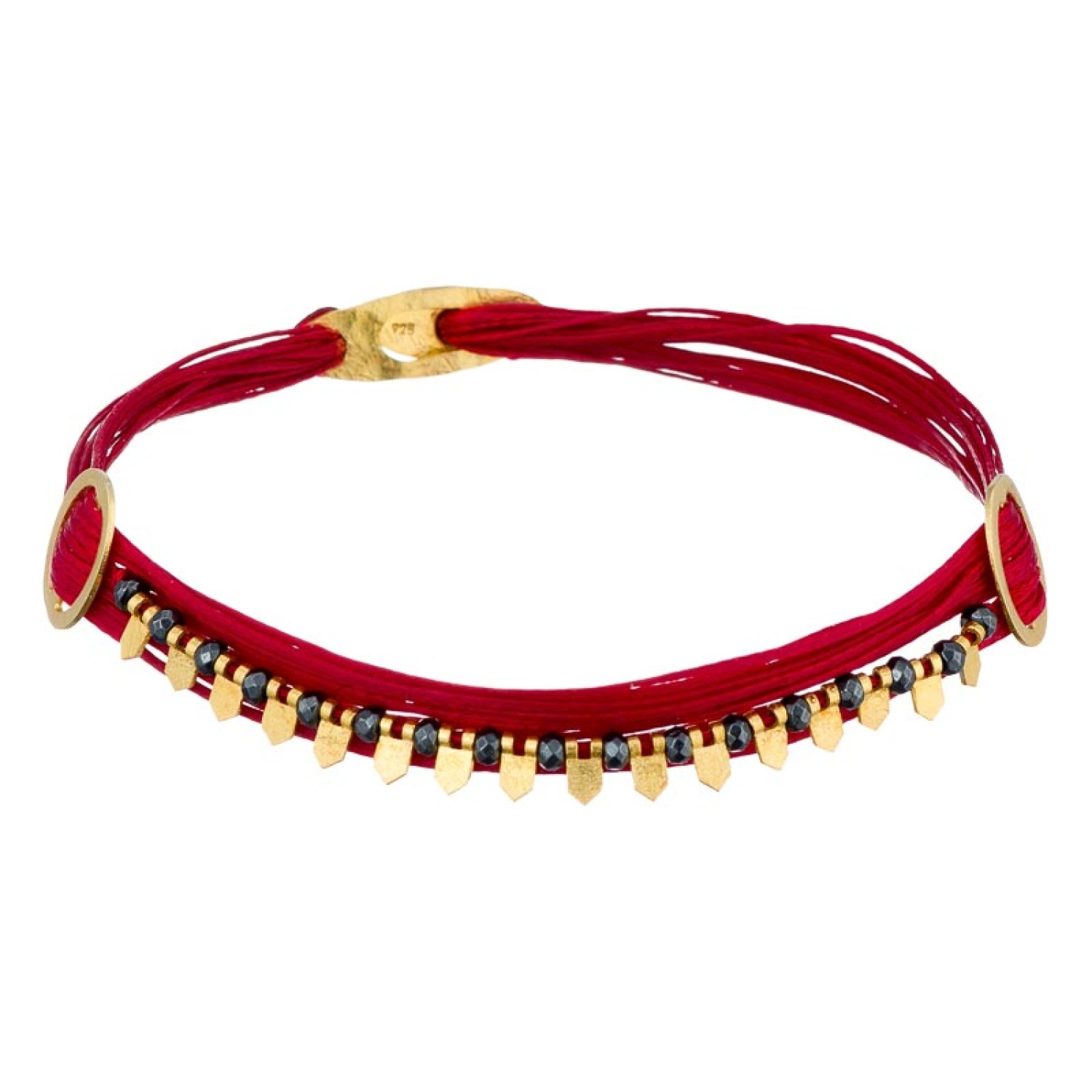 Βραχιόλι κορδόνια ασημένια επίχρυσα Φύλλα Αιματίτες