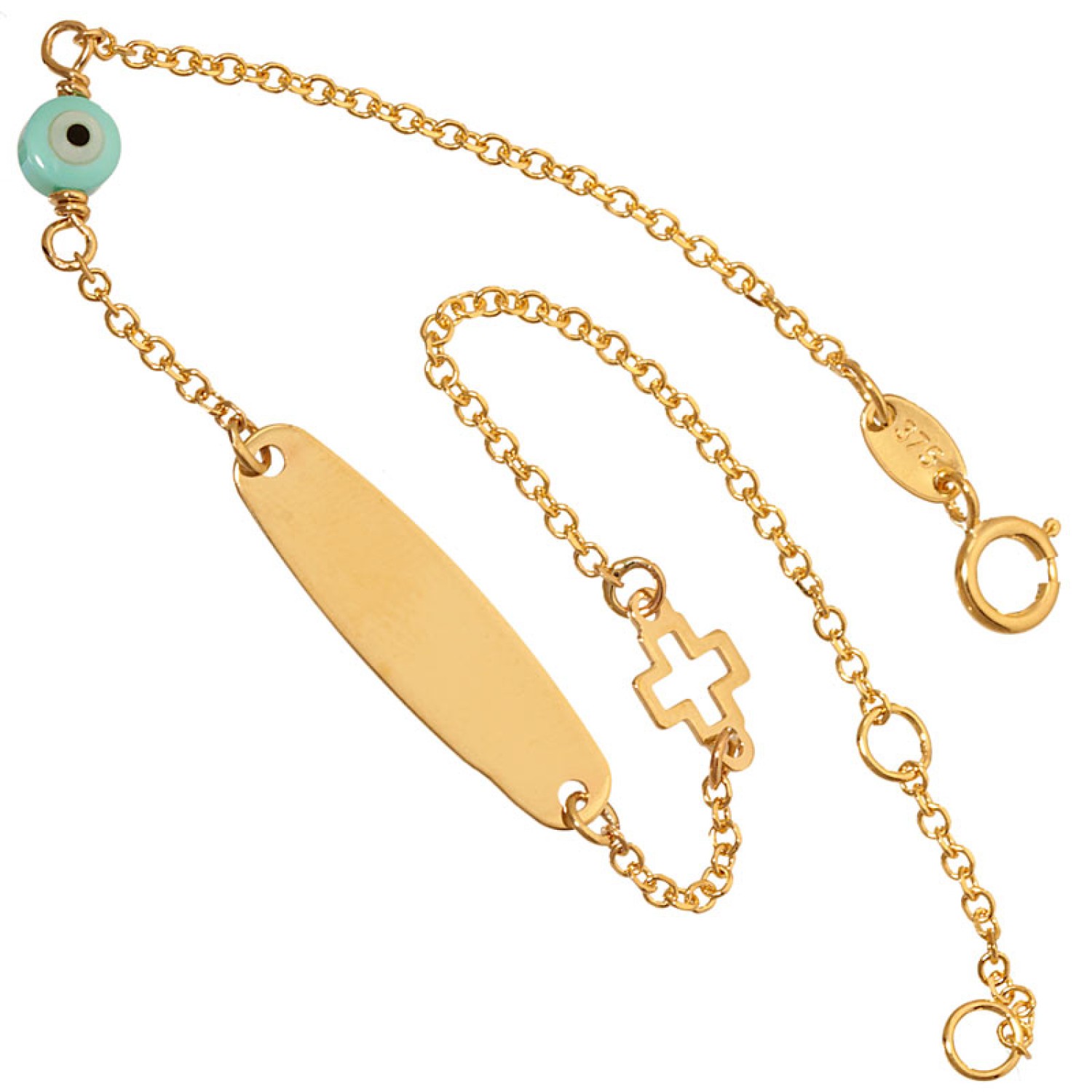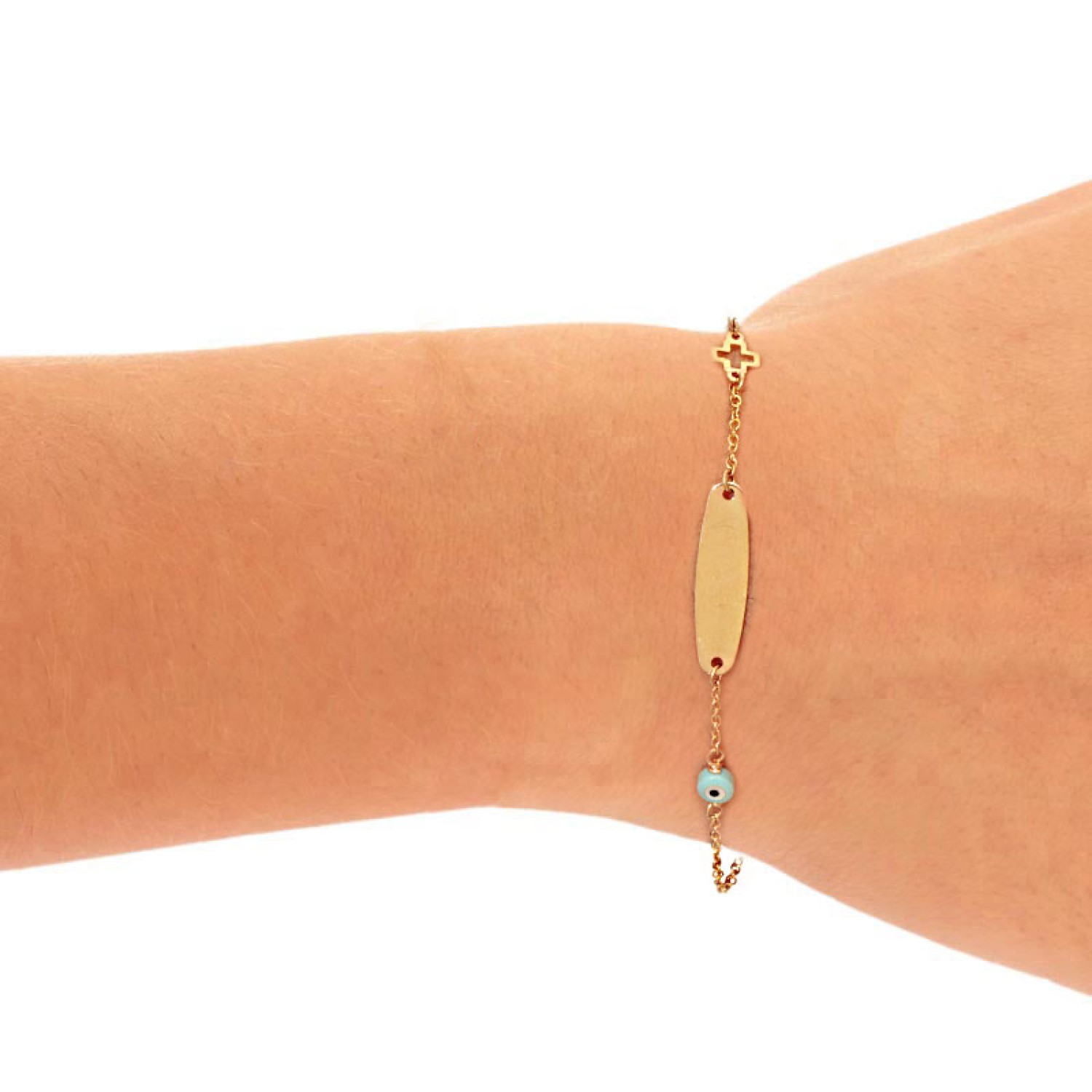 Χρυσό 9k βραχιόλι Ταυτότητα Μάτι Σταυρός