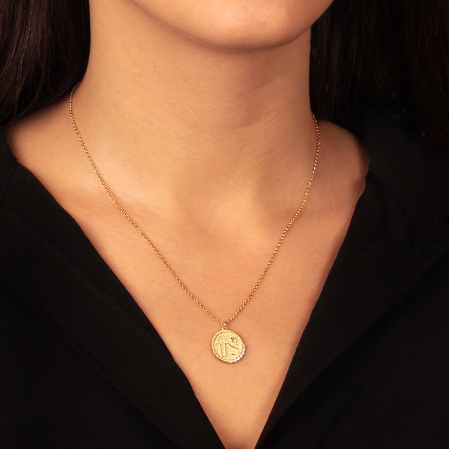 Γυναικείο ασημένιο 925 επίχρυσο σε 18k χρυσό κολιέ μενταγιόν Ζώδιο αστερισμός Αιγόκερως. Σύμφωνα με την Αστρολογία ανήκει στα ζώδια της Γής ανεξάρτητοι, σοβαροί με αίσθηση ευθύνης. Ενα μοναδικό κόσμημα φιλοτεχνημένο με ανάγλυφη τεχνική που προσδίδει λεπτομέρεια, ενω καρφωμένα λευκά ζιργκόν χαρίζουν πολυτέλεια. Εντυπωσιακό και εκτυφλωτικό, θα μεταμορφώσει κάθε εμφάνιση μαγνητίζοντας όλα τα βλέμματα θαυμασμού. Μια εξαιρετική επιλογή για εσάς ή για ενα προσωπικό δώρο με προσιτή τιμή και έντονο συμβολισμό.