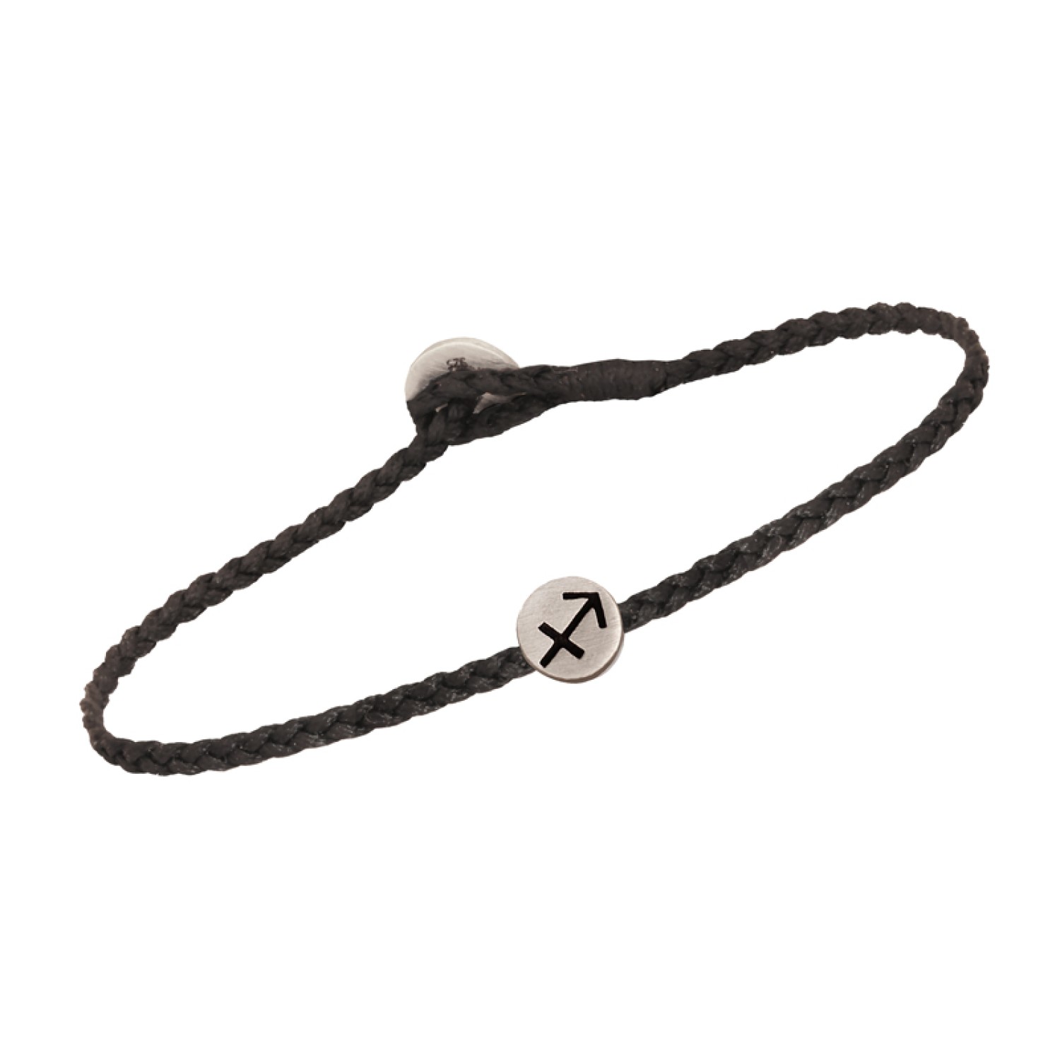 Γυναικείο βραχιόλι μαύρο κορδόνι πλεξούδα με ασημένιο 925 επιπλατινωμένο Ζώδιο Τοξότης. Ενα κλασσικό κόσμημα που συνδυάζει αστρολογικό συμβολισμό και chic στύλ. Διακριτικά λαμπερό αλλα τόσο προσωπικό θα γίνει το παντοτινό σας φυλαχτό. Μια εξαιρετική επιλογή για εσάς ή για ενα διαχρονικό δώρο με προσιτή τιμή και την δική σας σφραγίδα. Διαθέτει ασημένιο κούμπωμα στο πίσω μέρος.